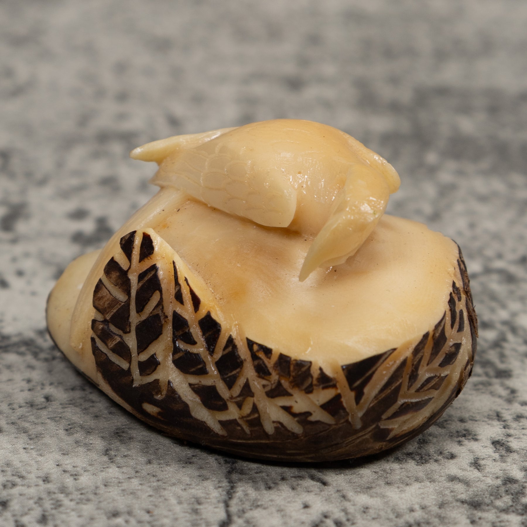 • Hand carved tagua nut “vegetable ivory” from the rainforest