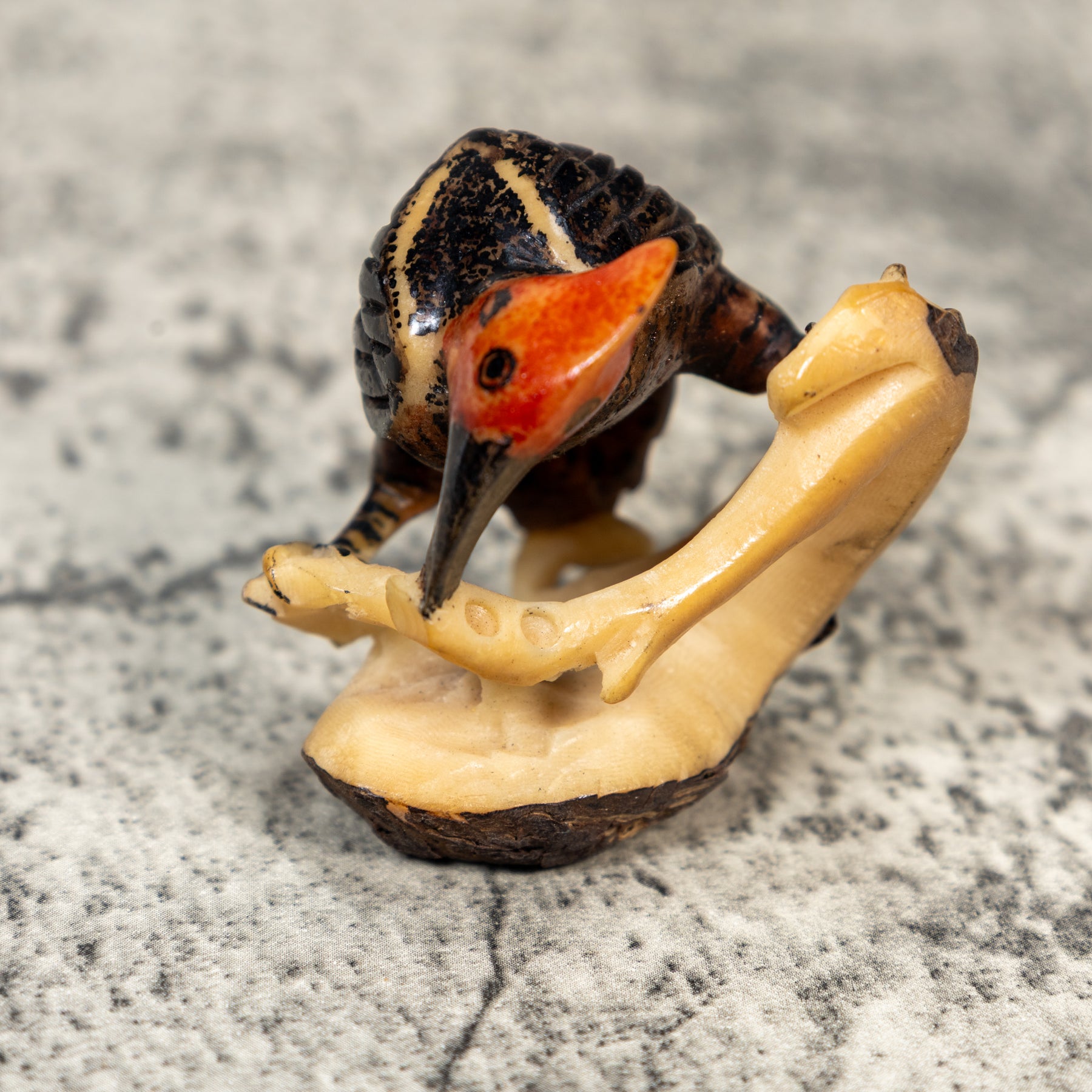 Hand carved from sustainably harvested tagua nut, often called “vegetable ivory”, this charming Woodpecker celebrates the rich biodiversity of the Latin American rainforest. Each small sculpture is created by skilled artisans in Panama who carefully shape and polish the natural nut before bringing the animal to life with detailed hand painting. Every piece is made by our artisan partners for TraderBrock, helping support traditional craft and fair, long term relationships with local makers.