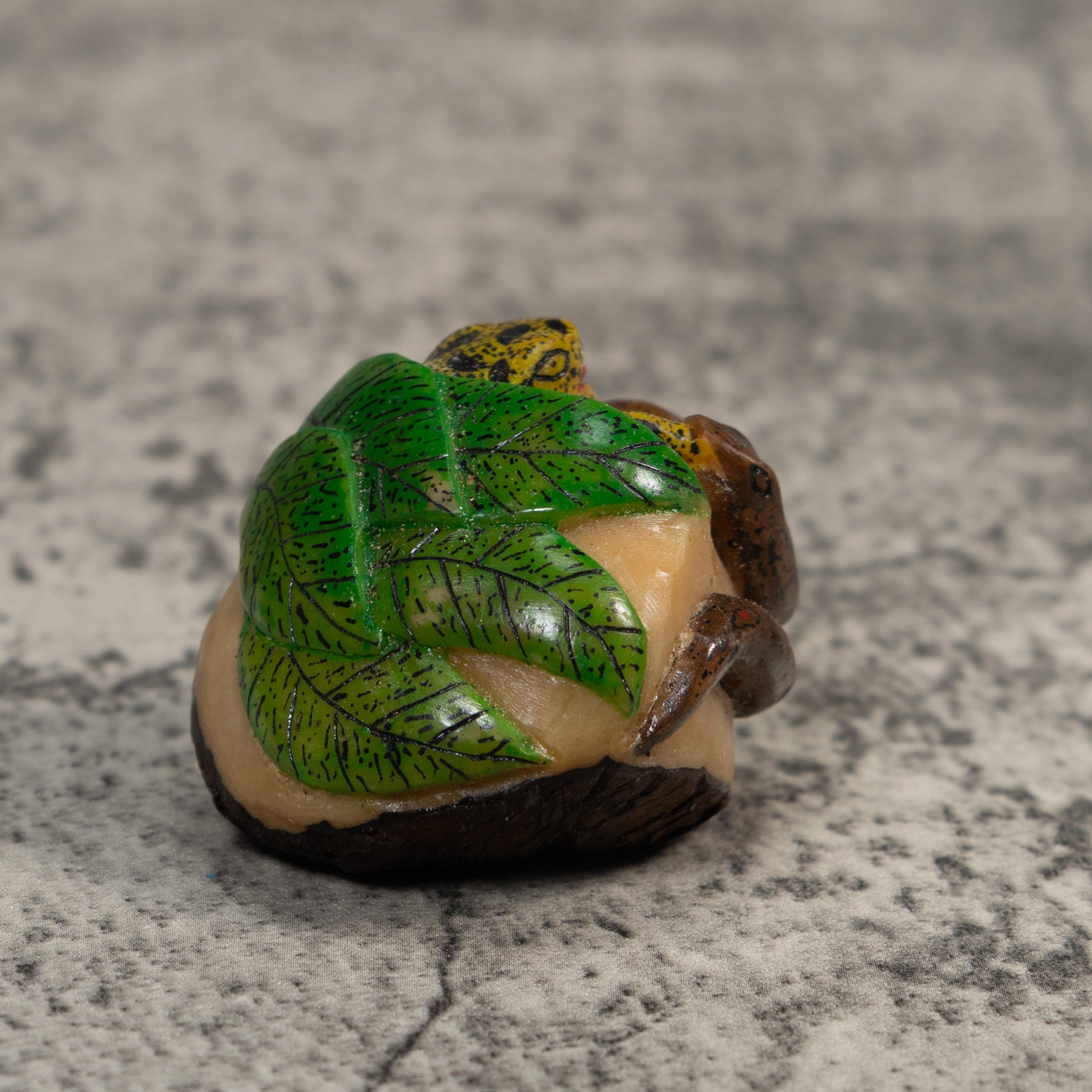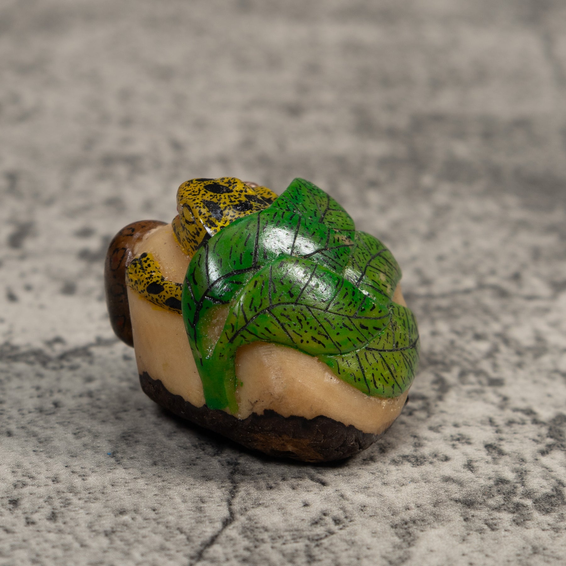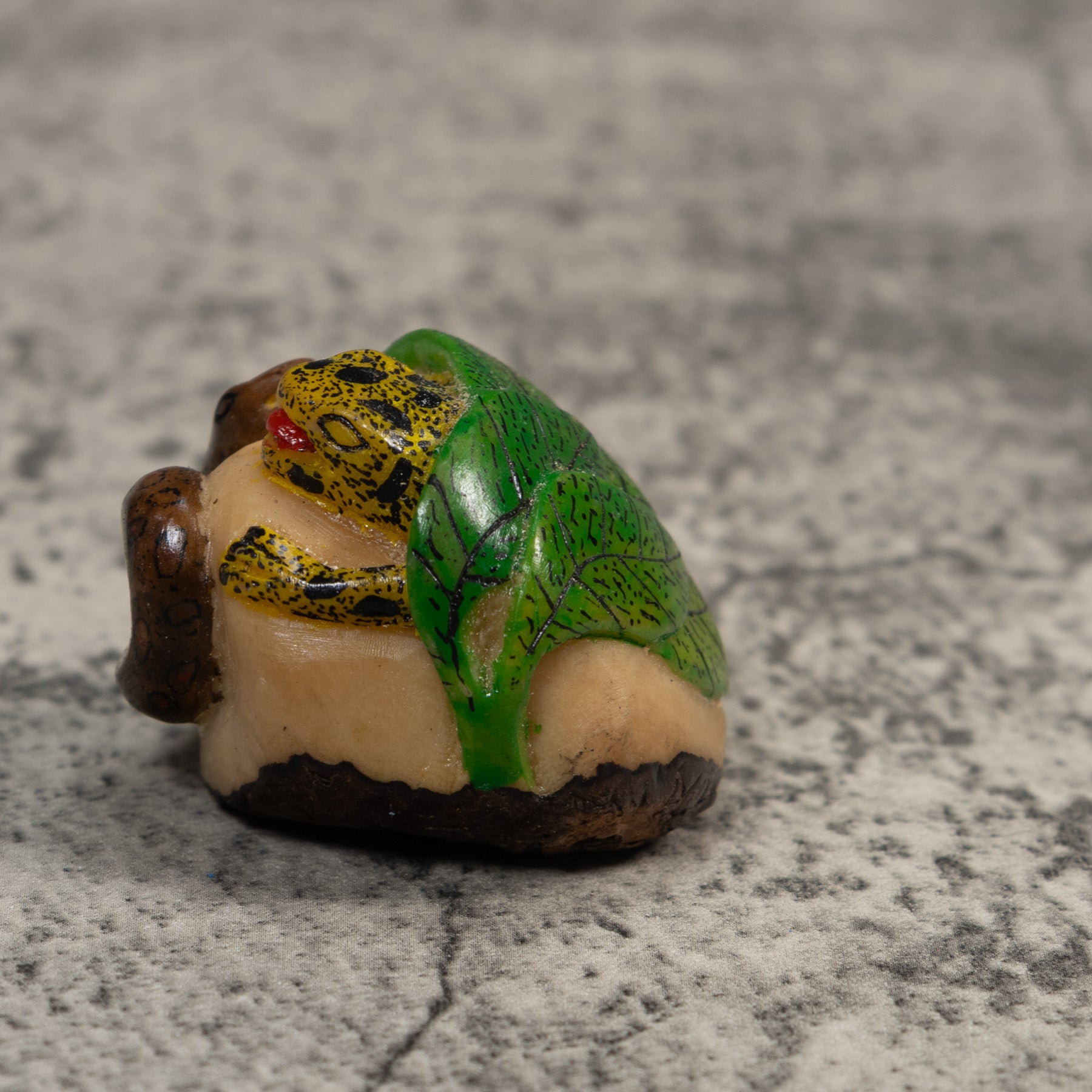 Yellow Brown And Green Snake Eating Frog Tagua Carving