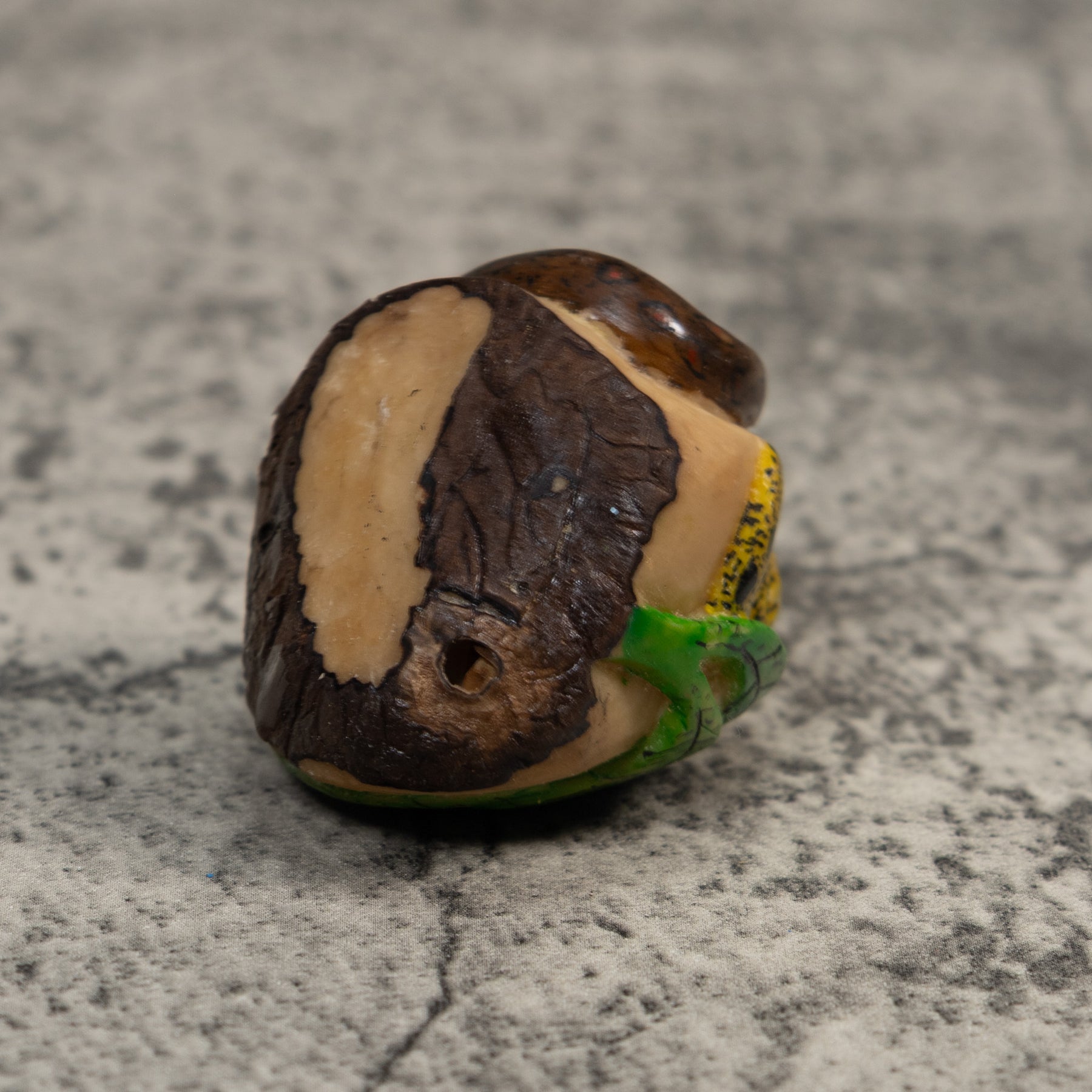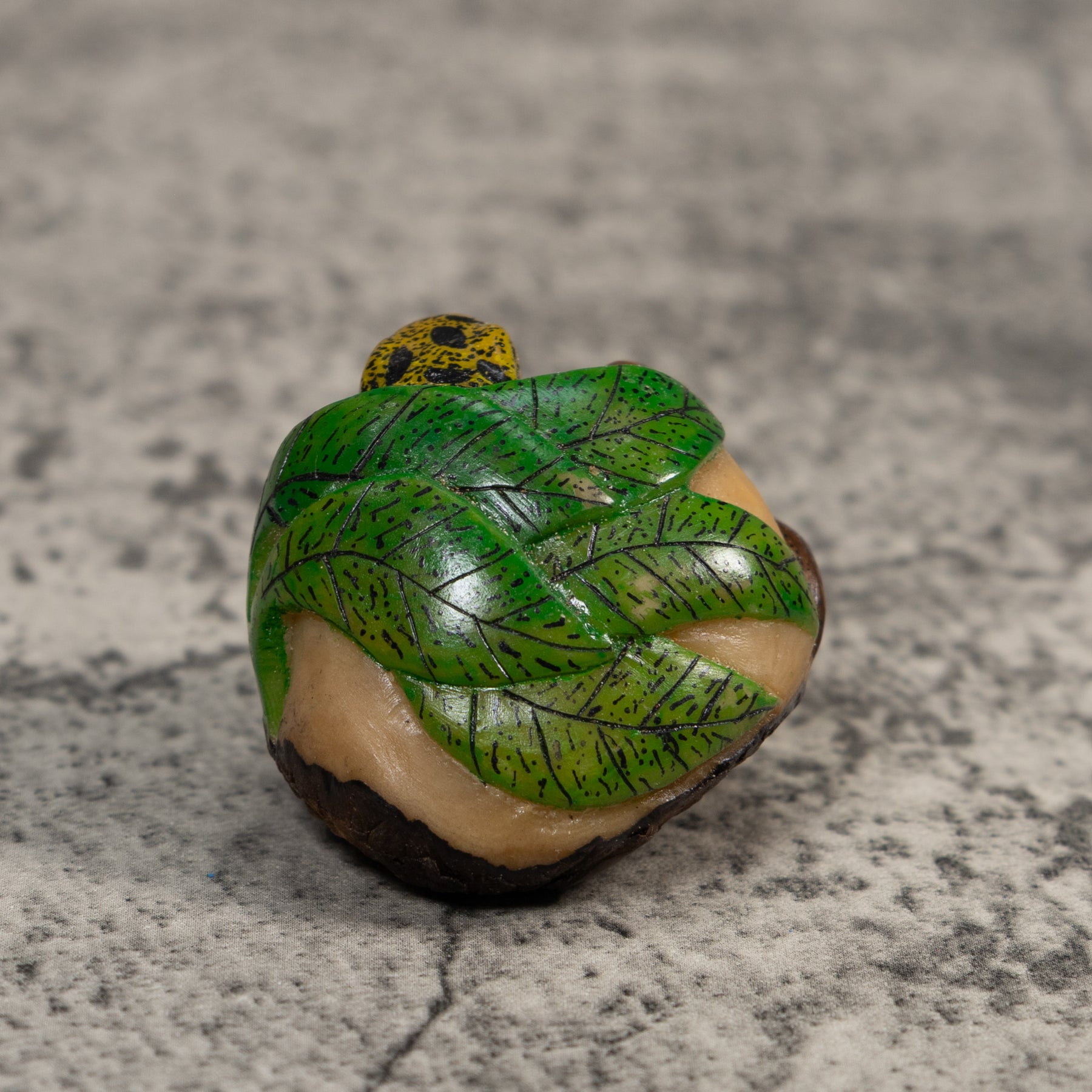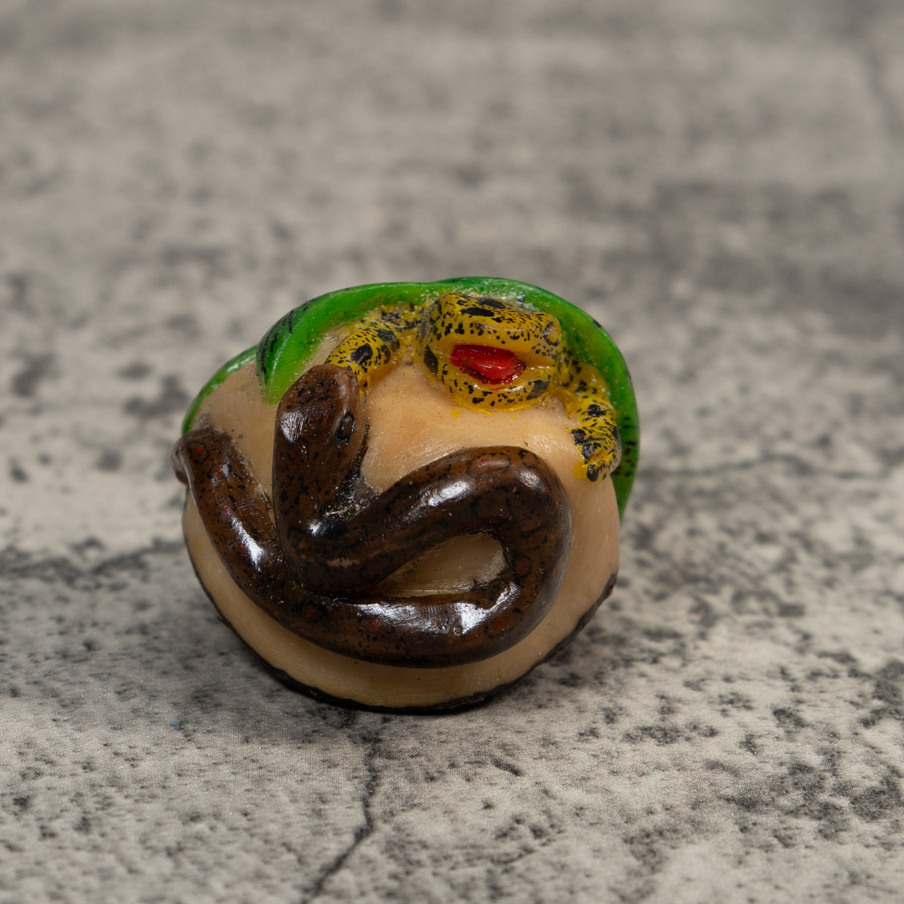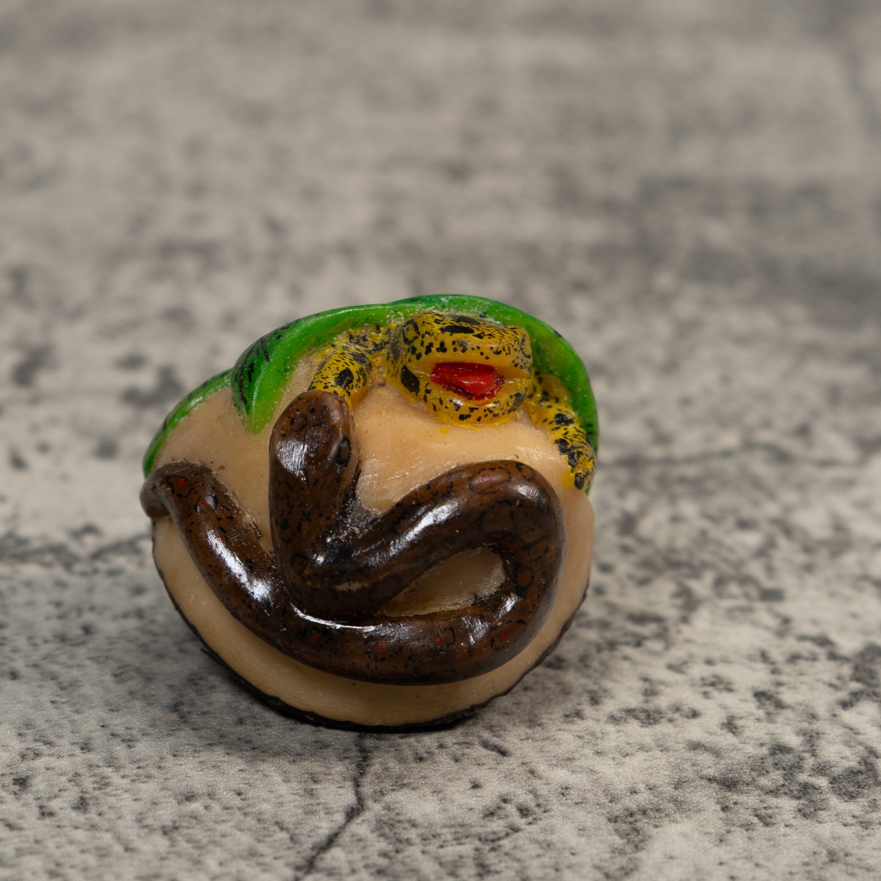 Yellow Brown And Green Snake Eating Frog Tagua Carving