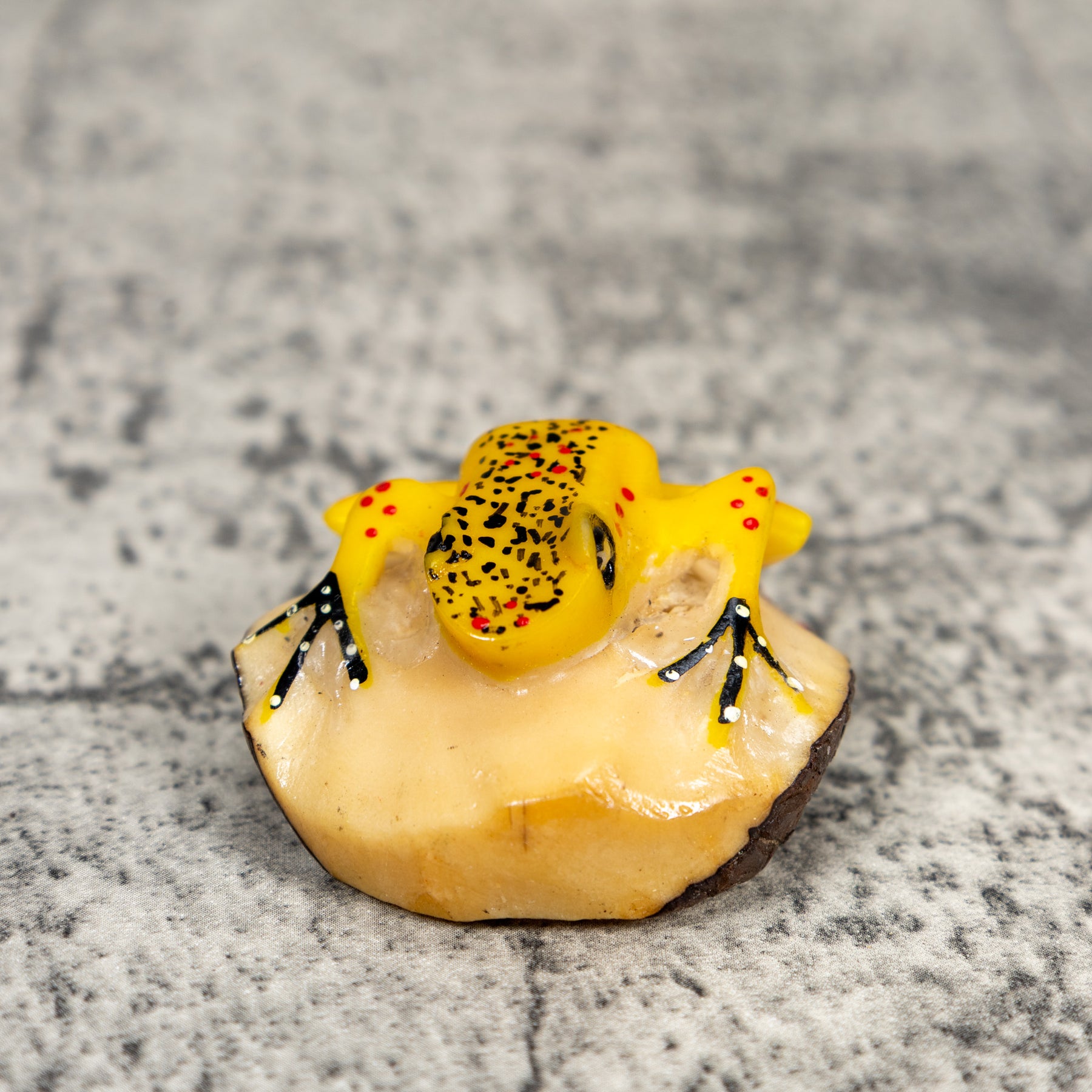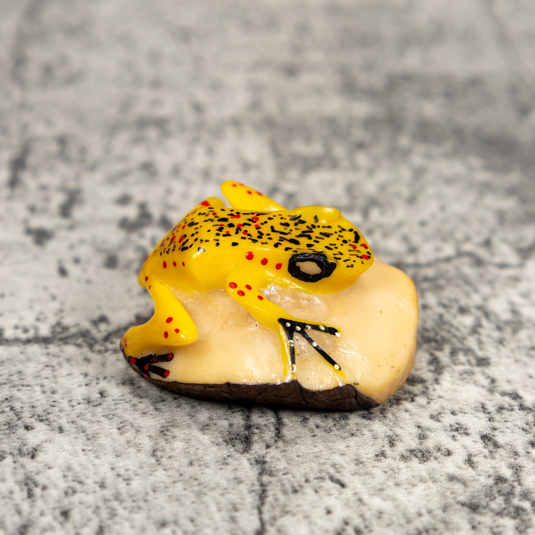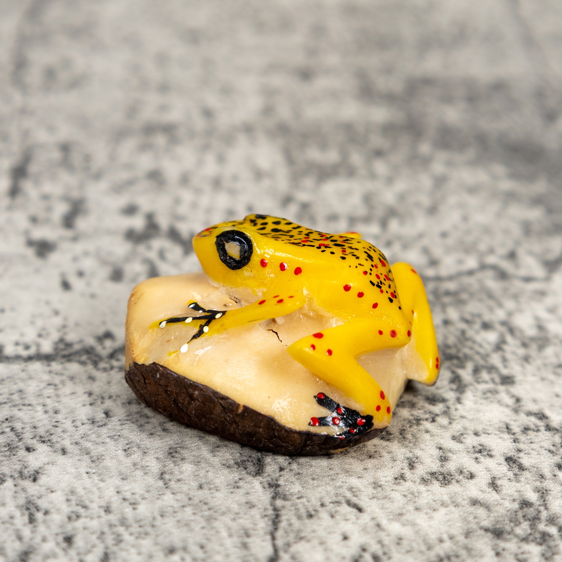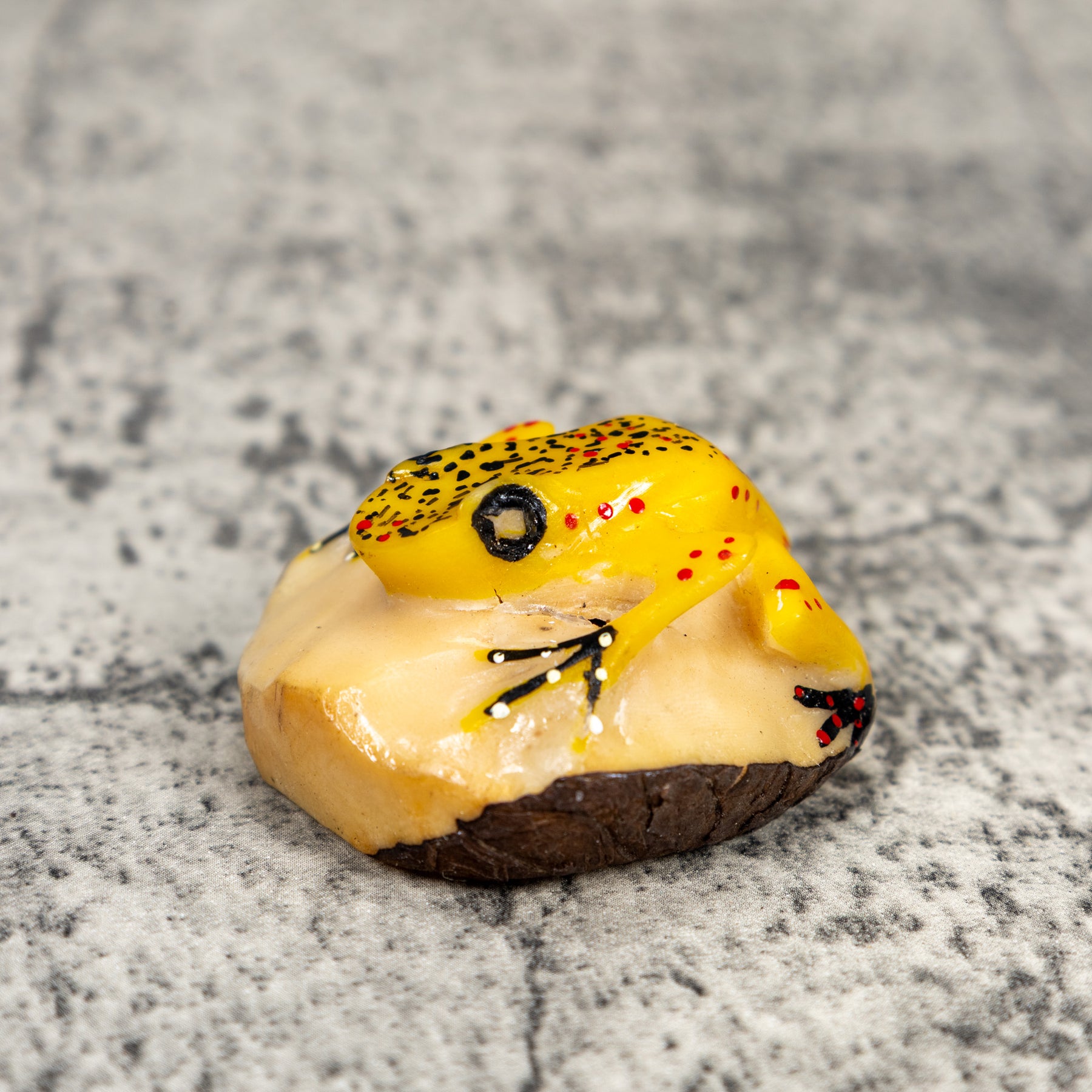 Hand carved from sustainably harvested tagua nut, often called “vegetable ivory”, this charming Frog celebrates the rich biodiversity of the Latin American rainforest. Each small sculpture is created by skilled artisans in Panama who carefully shape and polish the natural nut before bringing the animal to life with detailed hand painting. Every piece is made by our artisan partners for TraderBrock, helping support traditional craft and fair, long term relationships with local makers.