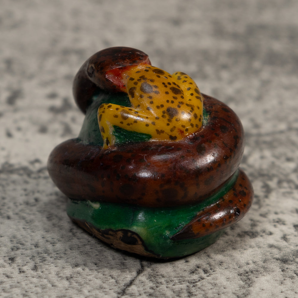 Vintage Snake Eating Frog Tagua Carving