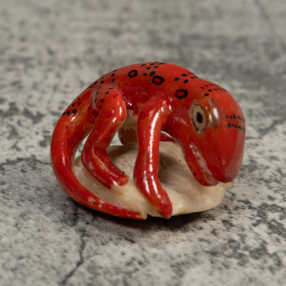 Vintage Red And Yellow Poison Dart Frog Tagua Carving