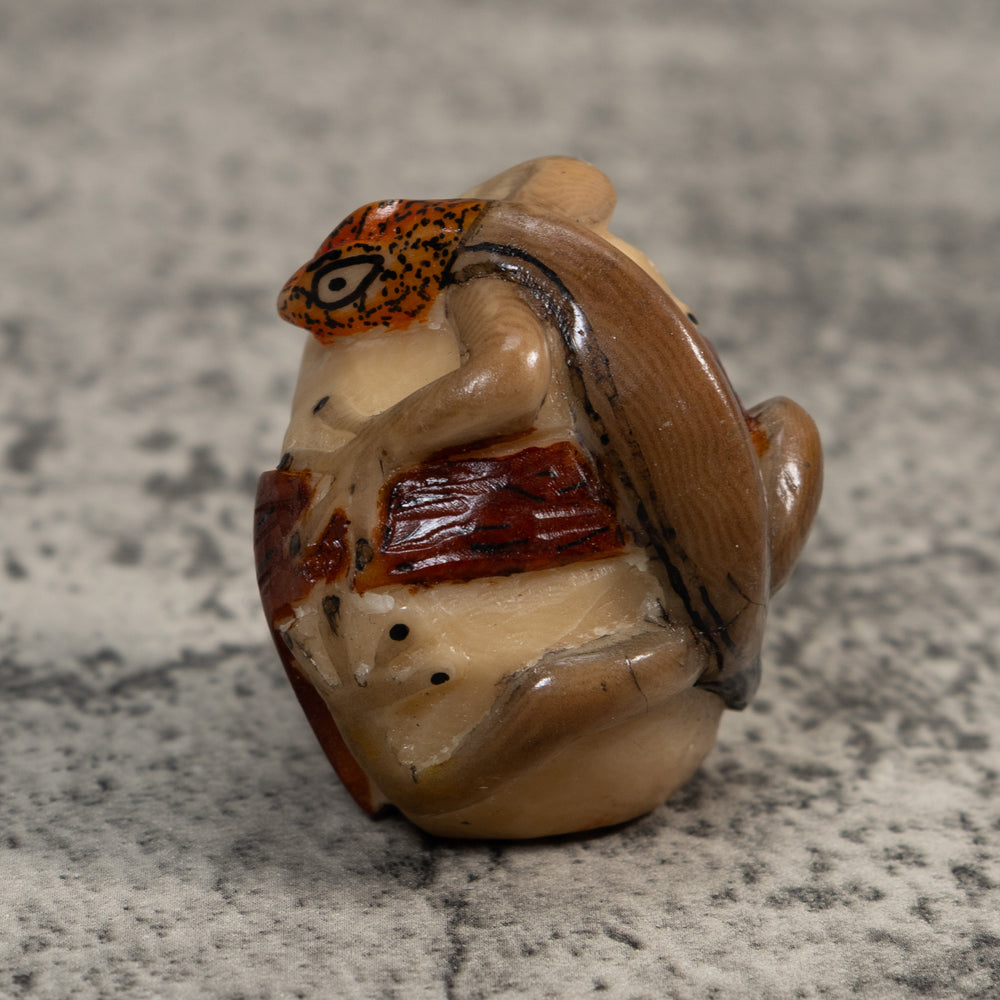 Vintage Brown And White Frog Tagua Carving