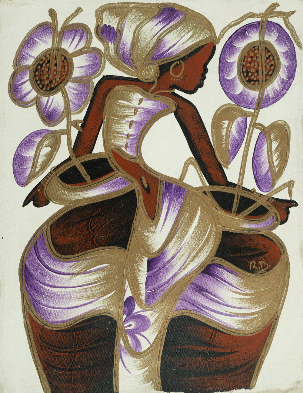 SEO Keywords: Haitian woman painting, passion flower art, natural world canvas, feminine beauty artwork, vibrant floral painting, Haitian acrylic portrait.