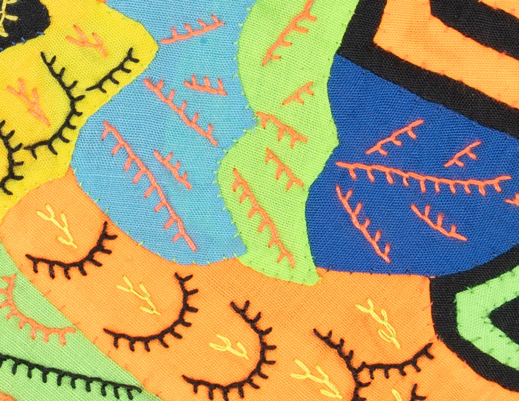 • Reverse appliqué design with layered cotton fabric and vivid colors
