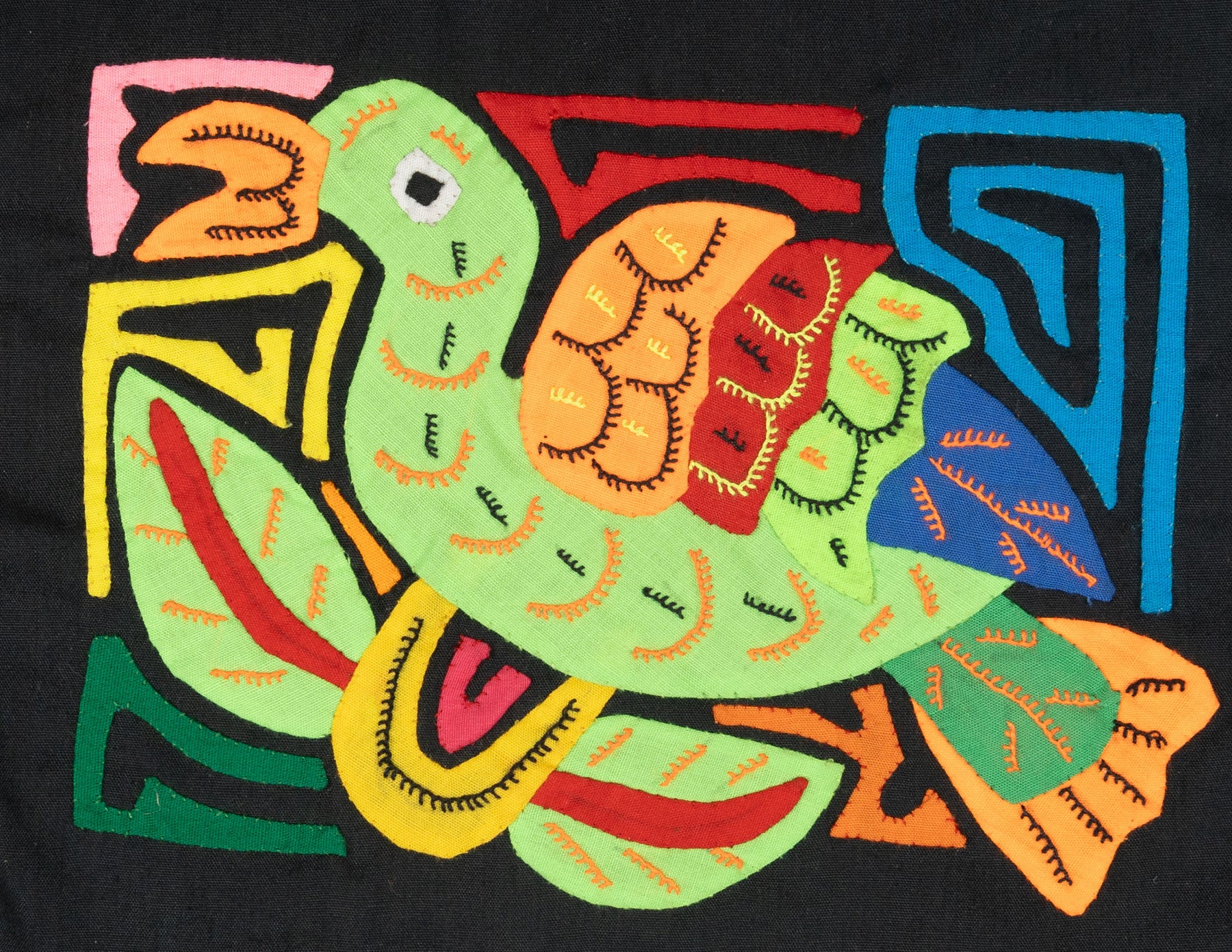 Molas often showcase animals such as birds, fish, turtles, and more. These designs can range from realistic to abstract and sometimes feature multiple animals in a single piece. Each depiction carries symbolic meaning and reflects the Guna people's deep connection to nature.