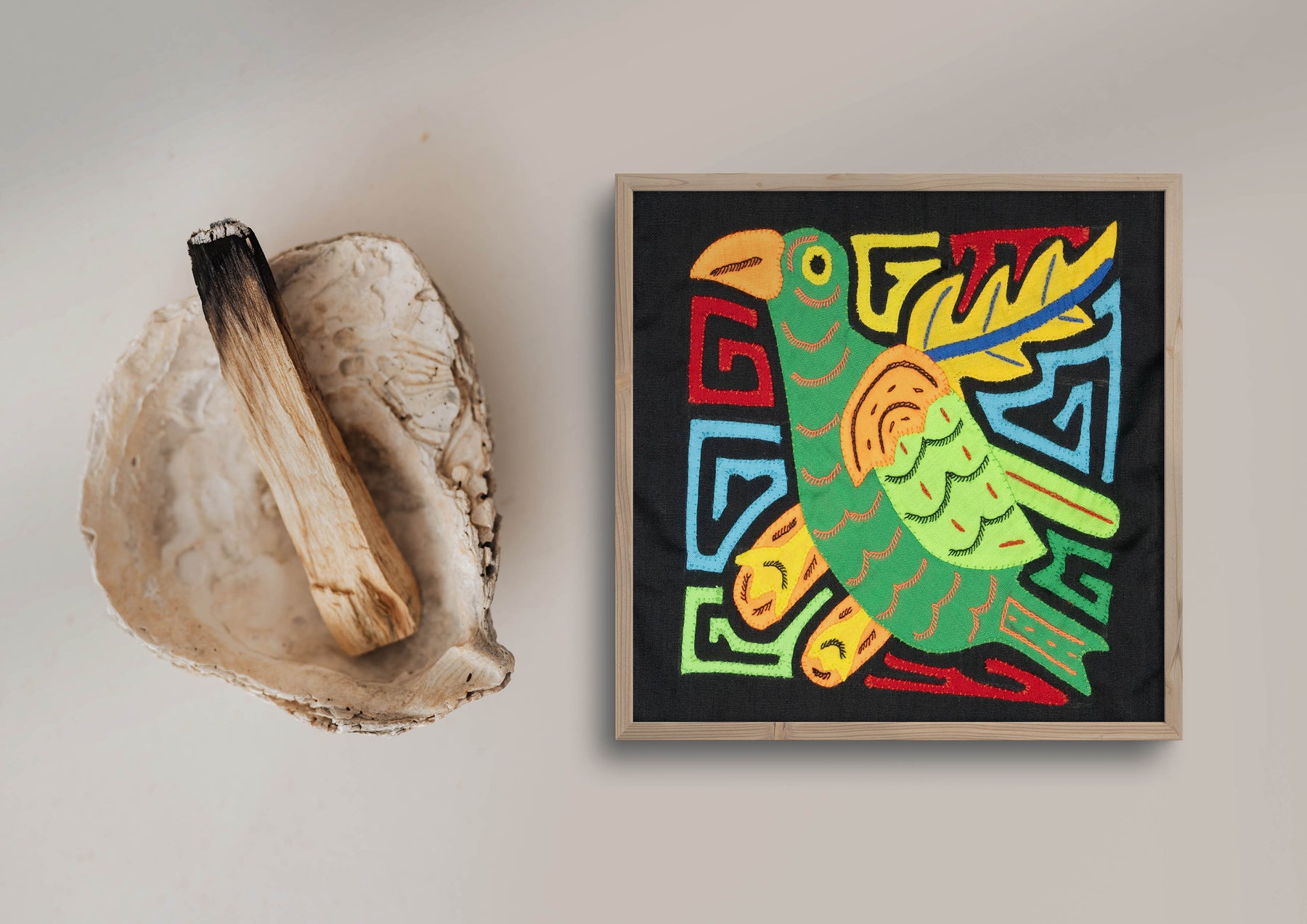 Molitas are traditionally used as parts of mola blouses, and today they make beautiful small works of art in their own right. You can frame this piece, incorporate it into a quilt or pillow, or display it on a shelf to bring a touch of vibrant Panamanian culture into your space. Because each molita is stitched by hand, no two are exactly alike, and small variations in color and stitching add to its character and authenticity.