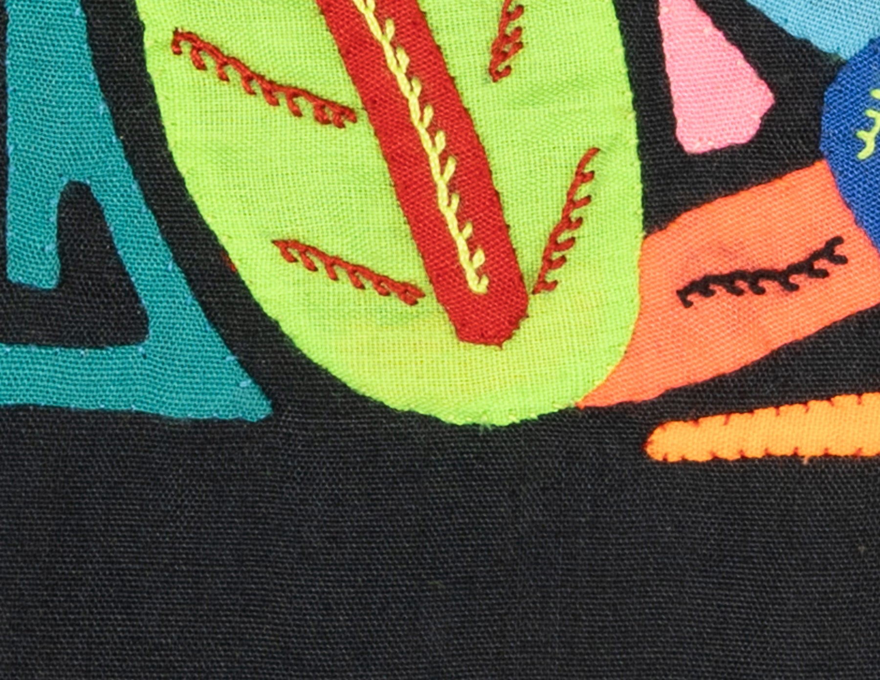 • Reverse appliqué design with layered cotton fabric and vivid colors