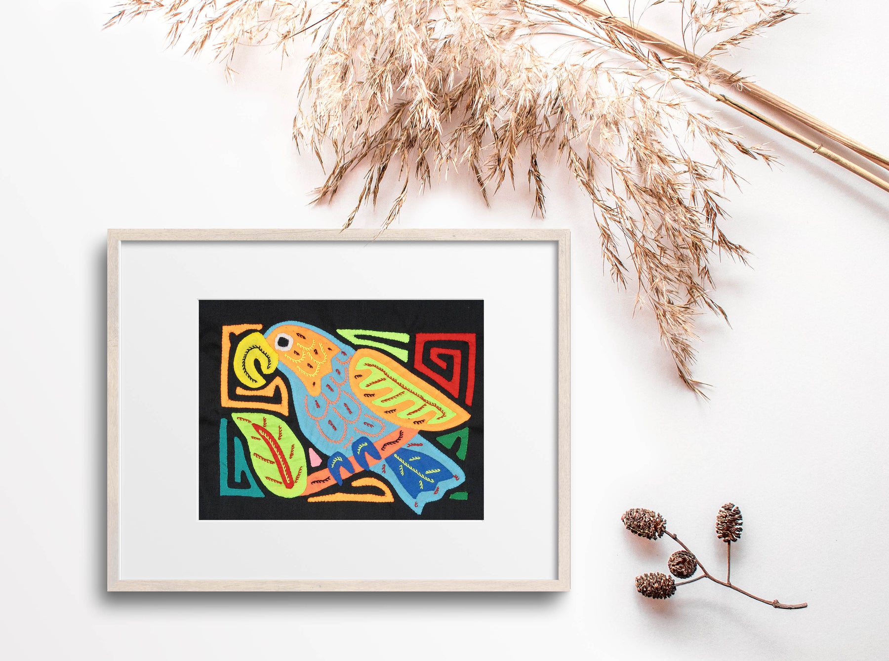Molitas are traditionally used as parts of mola blouses, and today they make beautiful small works of art in their own right. You can frame this piece, incorporate it into a quilt or pillow, or display it on a shelf to bring a touch of vibrant Panamanian culture into your space. Because each molita is stitched by hand, no two are exactly alike, and small variations in color and stitching add to its character and authenticity.