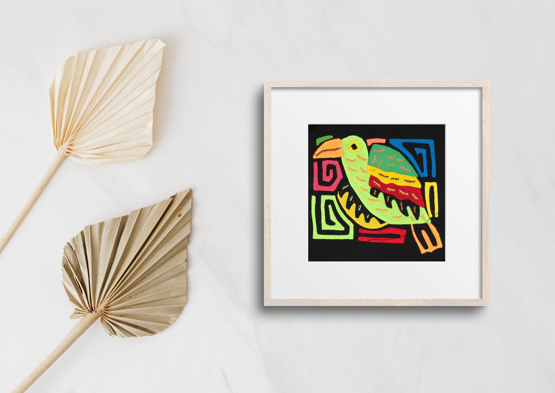 Molas often showcase animals such as birds, fish, turtles, and more. These designs can range from realistic to abstract and sometimes feature multiple animals in a single piece. Each depiction carries symbolic meaning and reflects the Guna people's deep connection to nature.