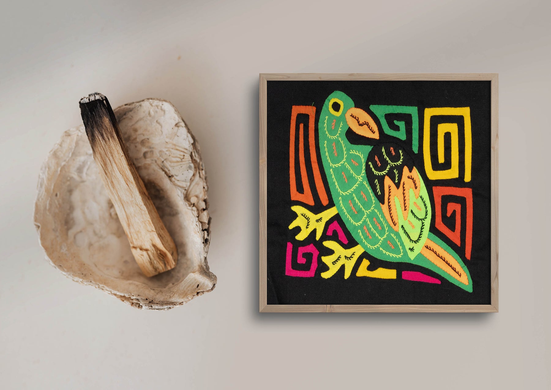 Molitas are traditionally used as parts of mola blouses, and today they make beautiful small works of art in their own right. You can frame this piece, incorporate it into a quilt or pillow, or display it on a shelf to bring a touch of vibrant Panamanian culture into your space. Because each molita is stitched by hand, no two are exactly alike, and small variations in color and stitching add to its character and authenticity.