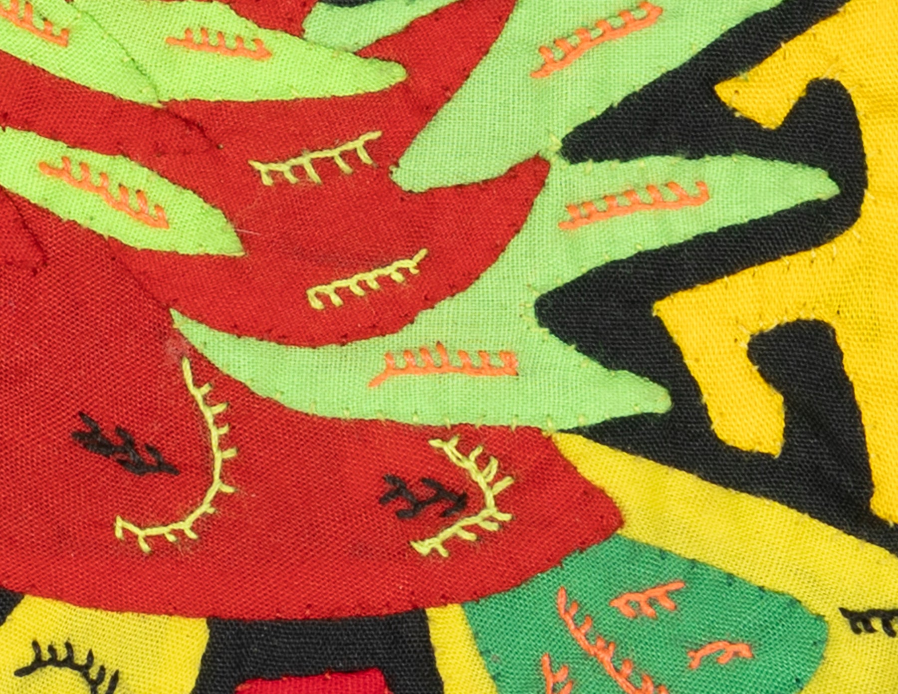 The process begins with layering vibrant cotton fabrics, which are carefully cut to reveal intricate patterns beneath. Guna artisans then use a combination of appliqué and reverse appliqué techniques, often enhancing each piece with fine hand embroidery. The result is a stunning, one-of-a-kind work of textile art rich in tradition, color, and cultural meaning.