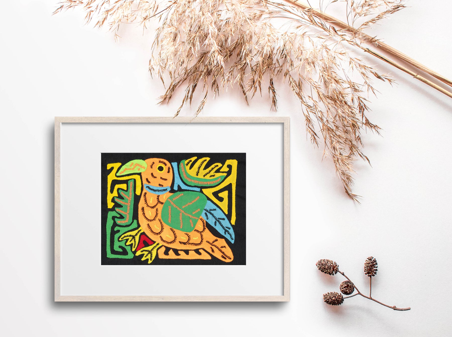 Molas often showcase animals such as birds, fish, turtles, and more. These designs can range from realistic to abstract and sometimes feature multiple animals in a single piece. Each depiction carries symbolic meaning and reflects the Guna people's deep connection to nature.