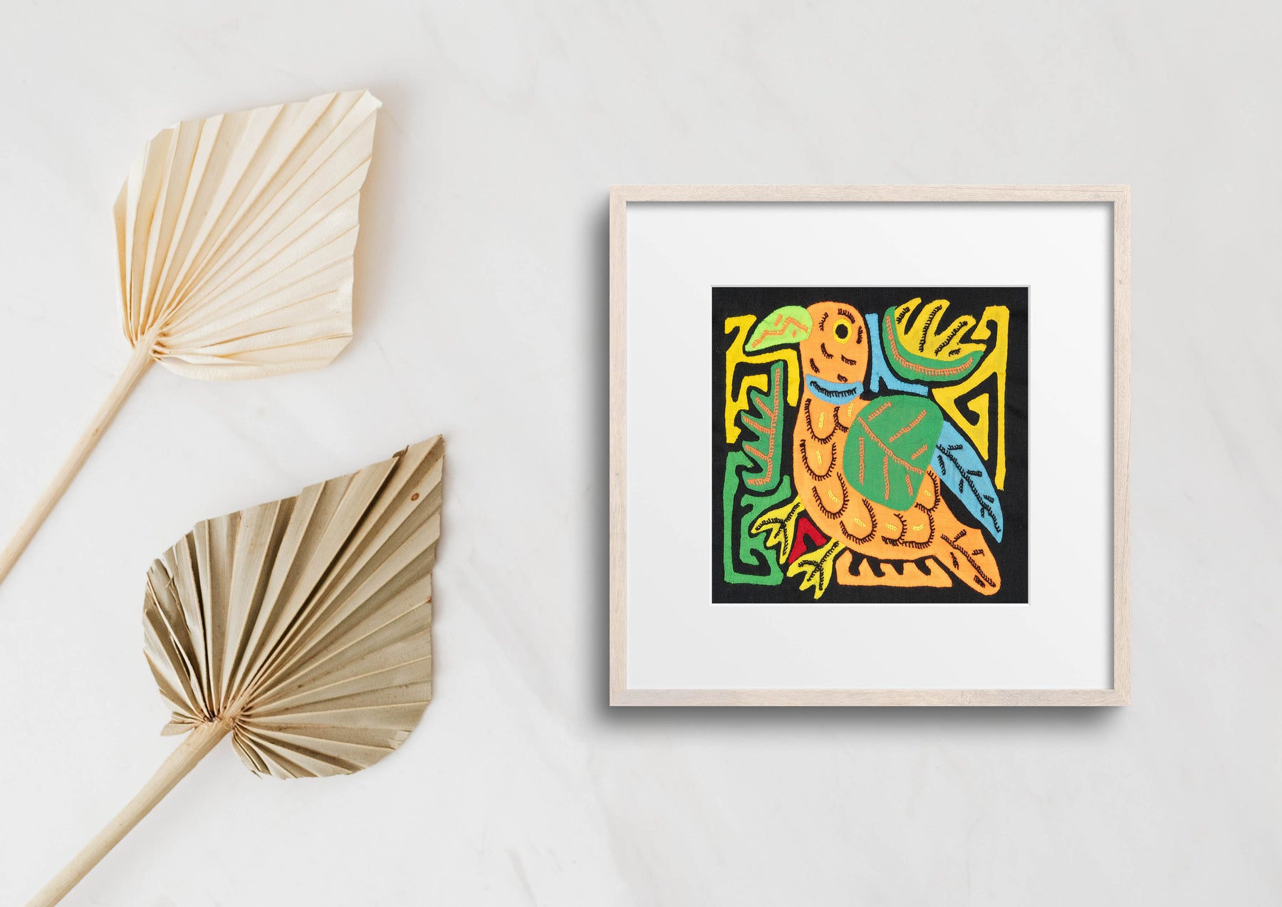 Molitas are traditionally used as parts of mola blouses, and today they make beautiful small works of art in their own right. You can frame this piece, incorporate it into a quilt or pillow, or display it on a shelf to bring a touch of vibrant Panamanian culture into your space. Because each molita is stitched by hand, no two are exactly alike, and small variations in color and stitching add to its character and authenticity.