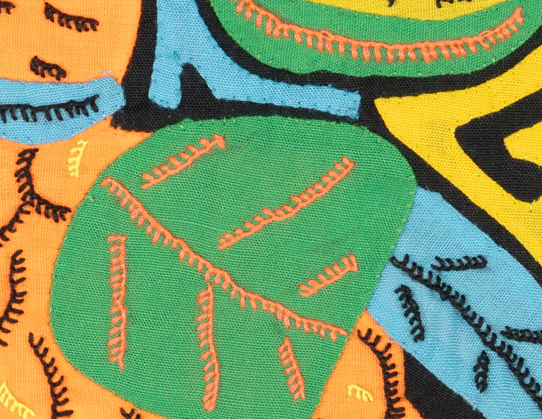 • Reverse appliqué design with layered cotton fabric and vivid colors