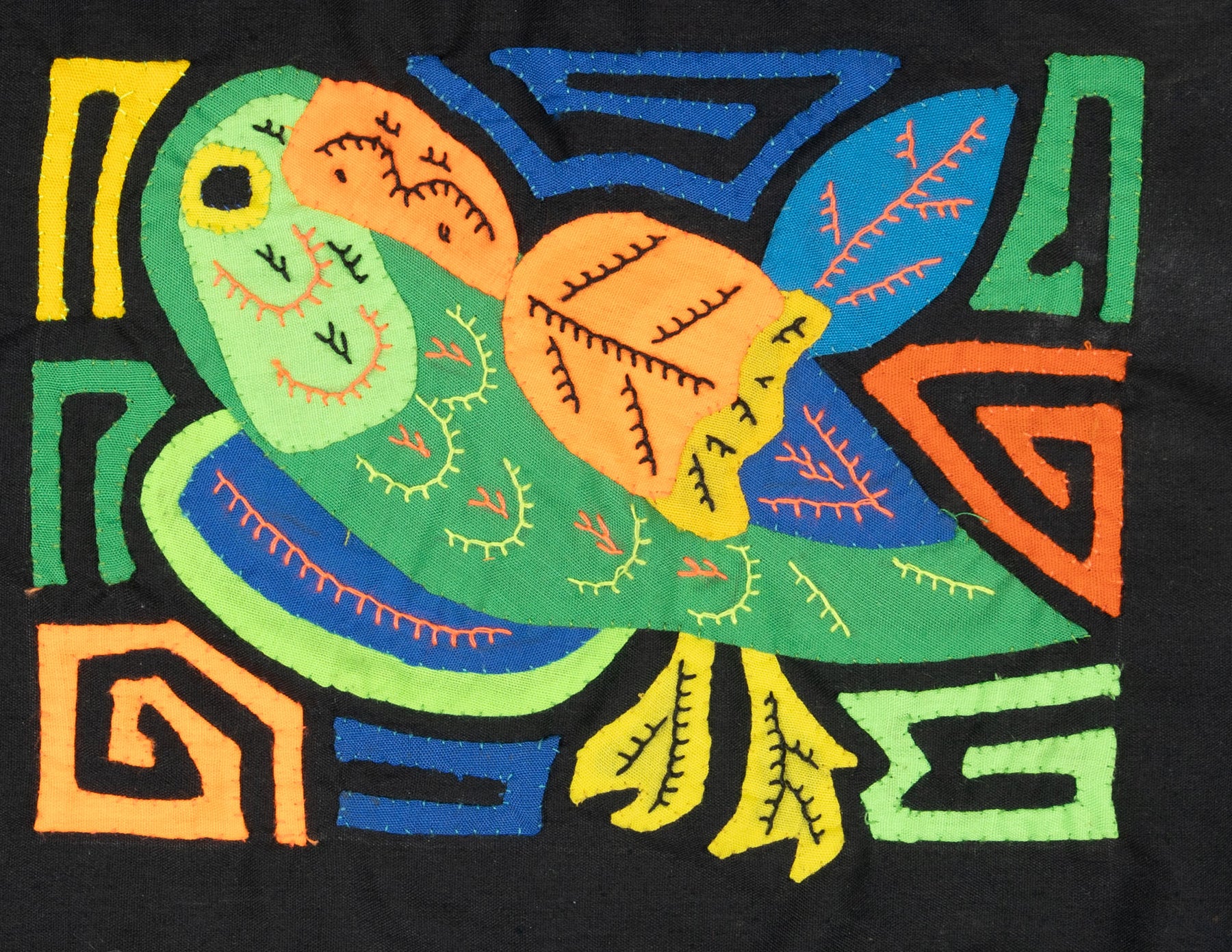 Molas often showcase animals such as birds, fish, turtles, and more. These designs can range from realistic to abstract and sometimes feature multiple animals in a single piece. Each depiction carries symbolic meaning and reflects the Guna people's deep connection to nature.