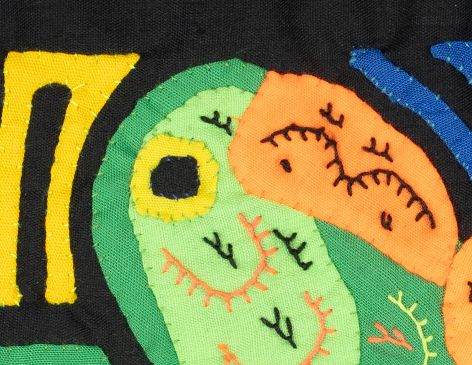 • Reverse appliqué design with layered cotton fabric and vivid colors