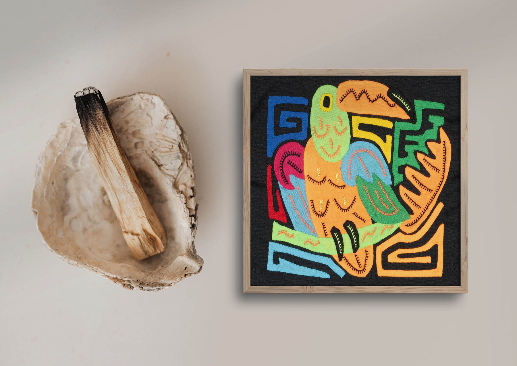 Molitas are traditionally used as parts of mola blouses, and today they make beautiful small works of art in their own right. You can frame this piece, incorporate it into a quilt or pillow, or display it on a shelf to bring a touch of vibrant Panamanian culture into your space. Because each molita is stitched by hand, no two are exactly alike, and small variations in color and stitching add to its character and authenticity.
