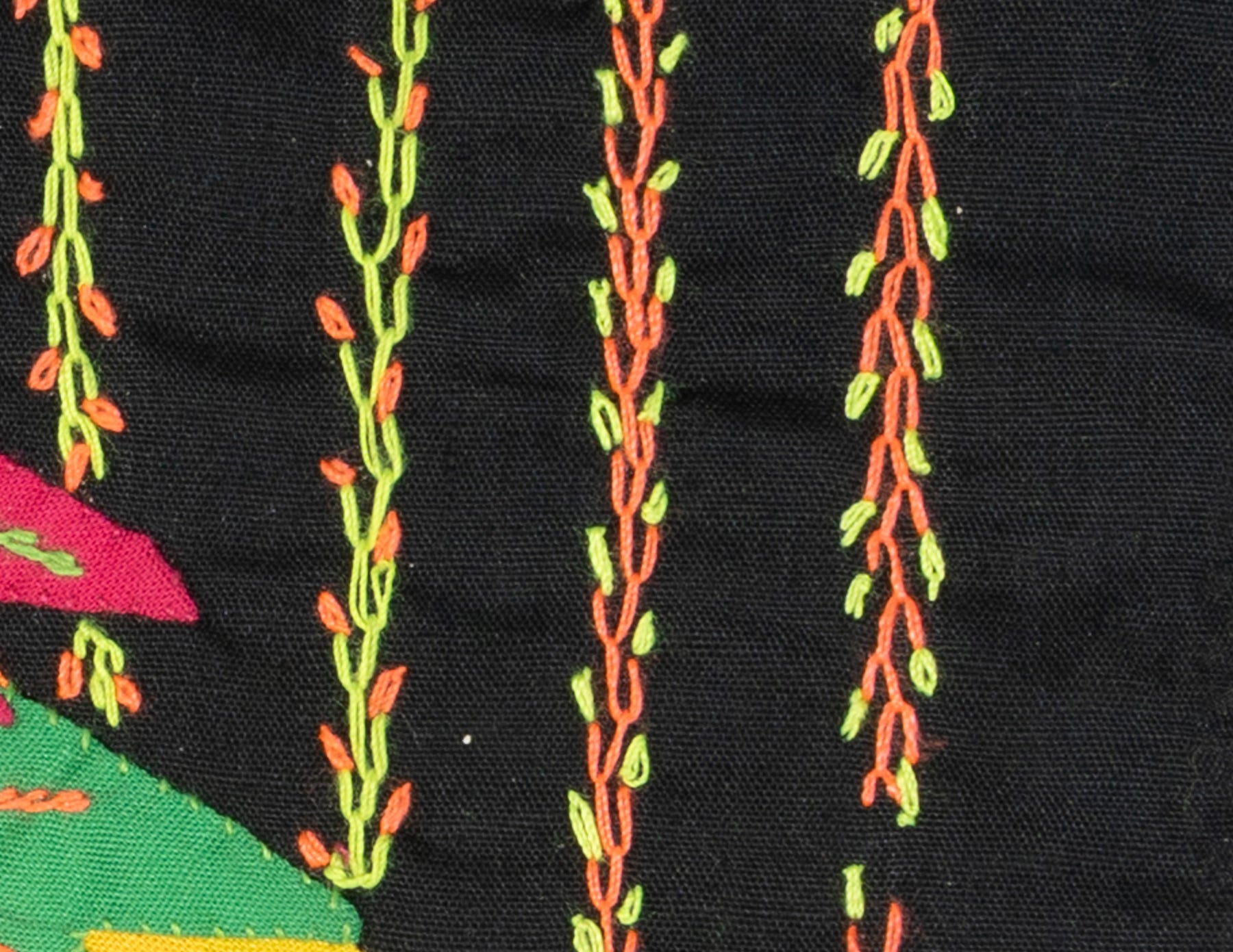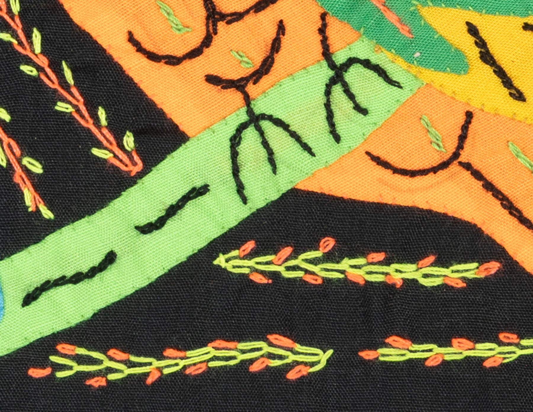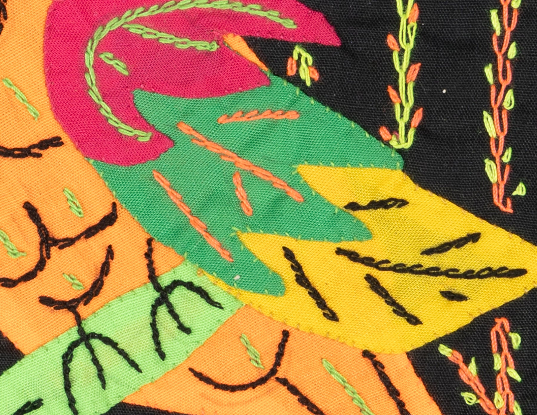 • Reverse appliqué design with layered cotton fabric and vivid colors