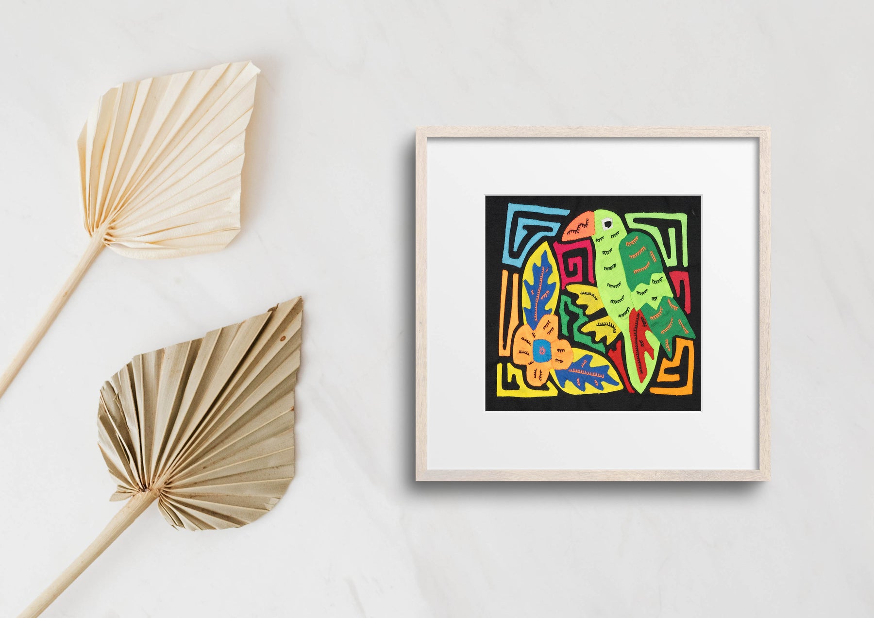 Molas often showcase animals such as birds, fish, turtles, and more. These designs can range from realistic to abstract and sometimes feature multiple animals in a single piece. Each depiction carries symbolic meaning and reflects the Guna people's deep connection to nature.