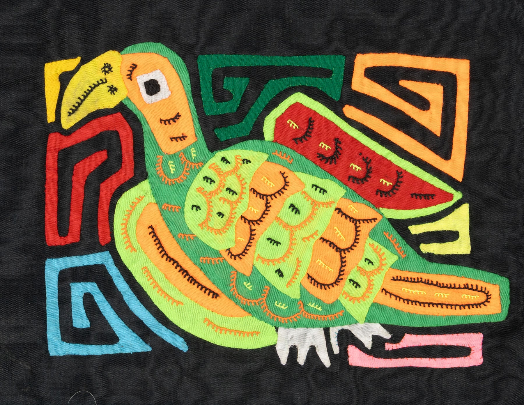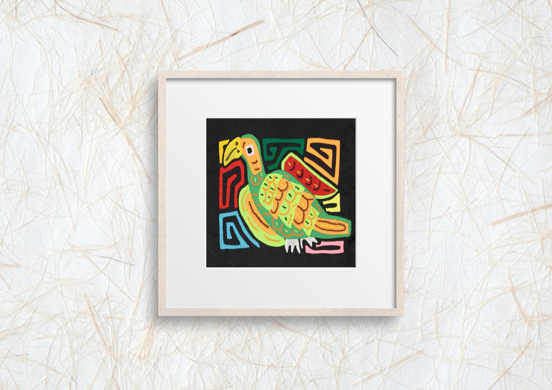 Molas often showcase animals such as birds, fish, turtles, and more. These designs can range from realistic to abstract and sometimes feature multiple animals in a single piece. Each depiction carries symbolic meaning and reflects the Guna people's deep connection to nature.