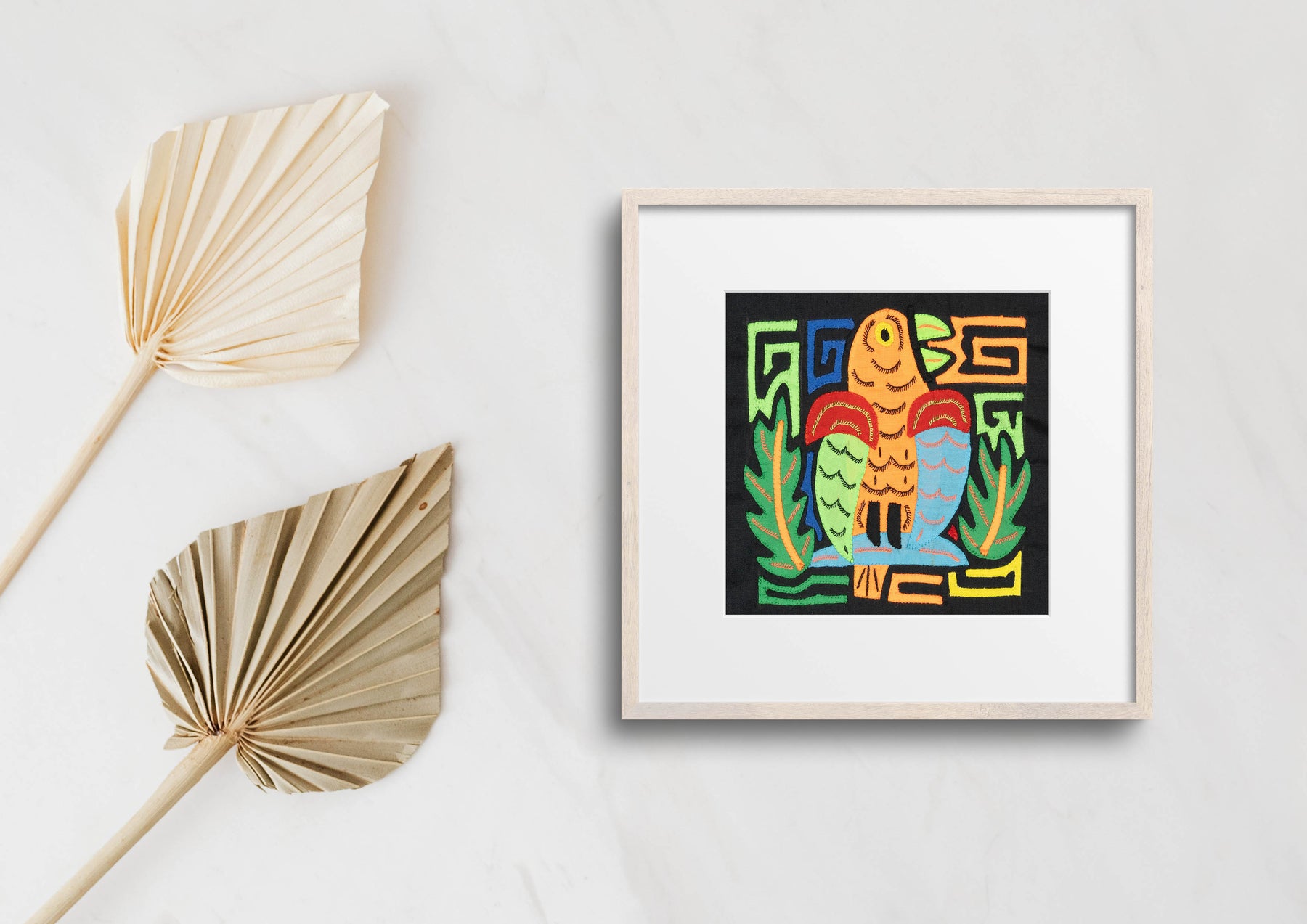 Molas often showcase animals such as birds, fish, turtles, and more. These designs can range from realistic to abstract and sometimes feature multiple animals in a single piece. Each depiction carries symbolic meaning and reflects the Guna people's deep connection to nature.