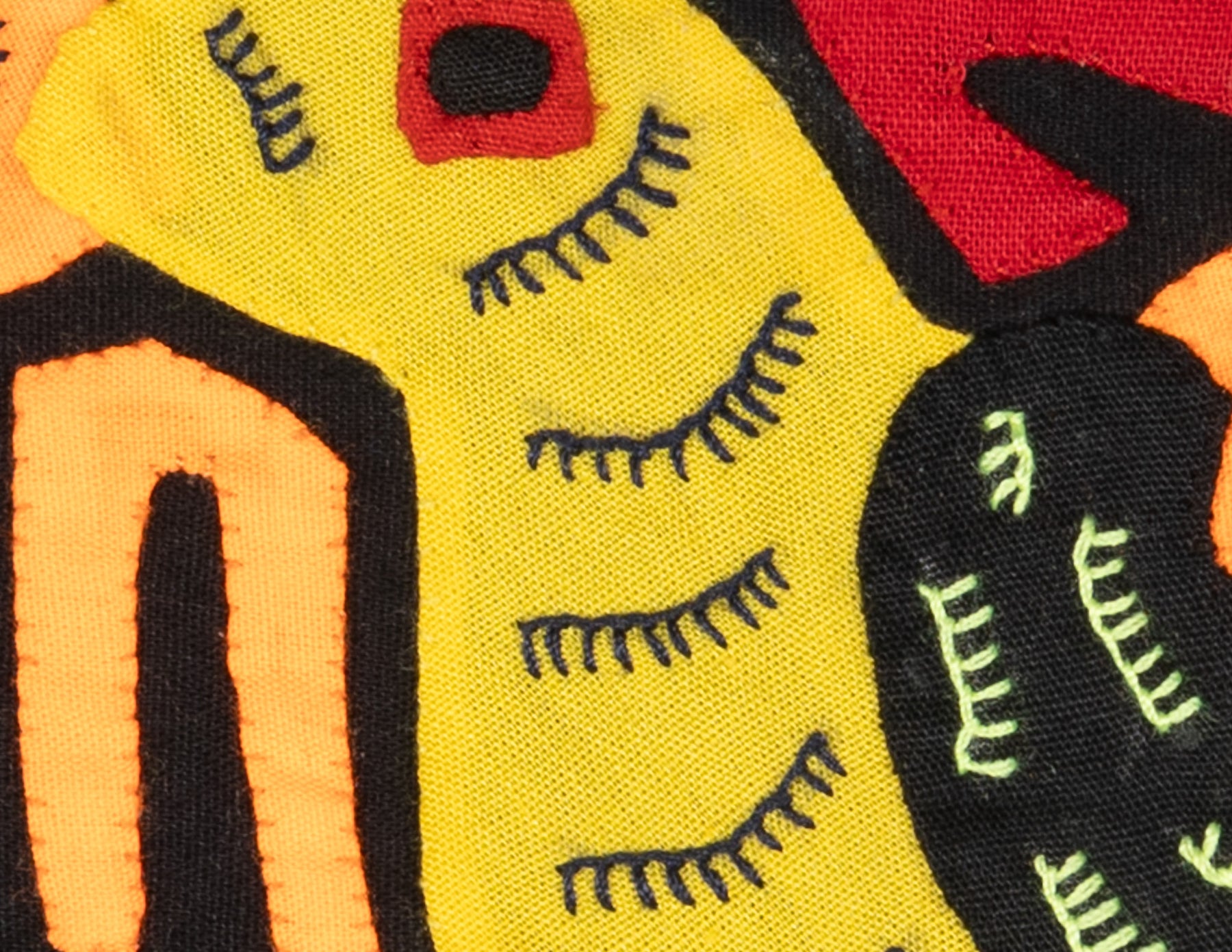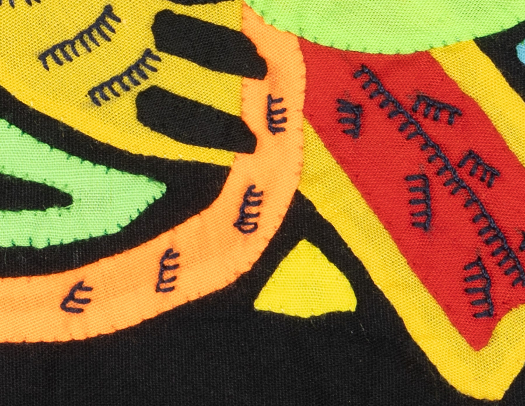 The process begins with layering vibrant cotton fabrics, which are carefully cut to reveal intricate patterns beneath. Guna artisans then use a combination of appliqué and reverse appliqué techniques, often enhancing each piece with fine hand embroidery. The result is a stunning, one-of-a-kind work of textile art rich in tradition, color, and cultural meaning.