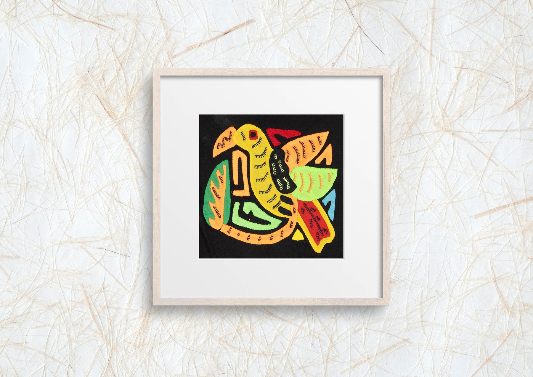 Hand sewn from layered cotton fabric, this colorful Multicolor Orange Yellow And Red Bird Molita celebrates the traditional textile art of the Guna people of Panama. Each small panel is created using reverse appliqué, where artisans carefully cut and stitch several layers of cloth to reveal intricate patterns, animals, and geometric motifs. Every molita is made by our artisan partners for TraderBrock, supporting long term relationships with Guna communities in the Guna Yala region.