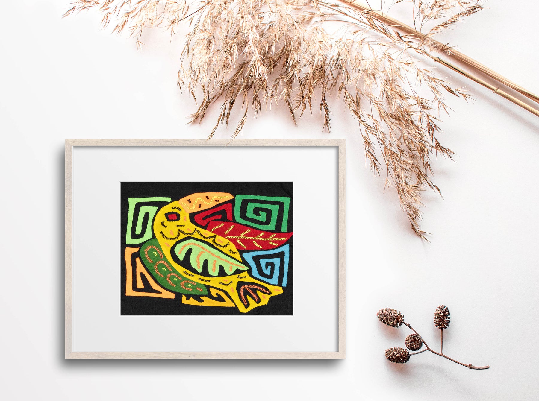 Molas often showcase animals such as birds, fish, turtles, and more. These designs can range from realistic to abstract and sometimes feature multiple animals in a single piece. Each depiction carries symbolic meaning and reflects the Guna people's deep connection to nature.