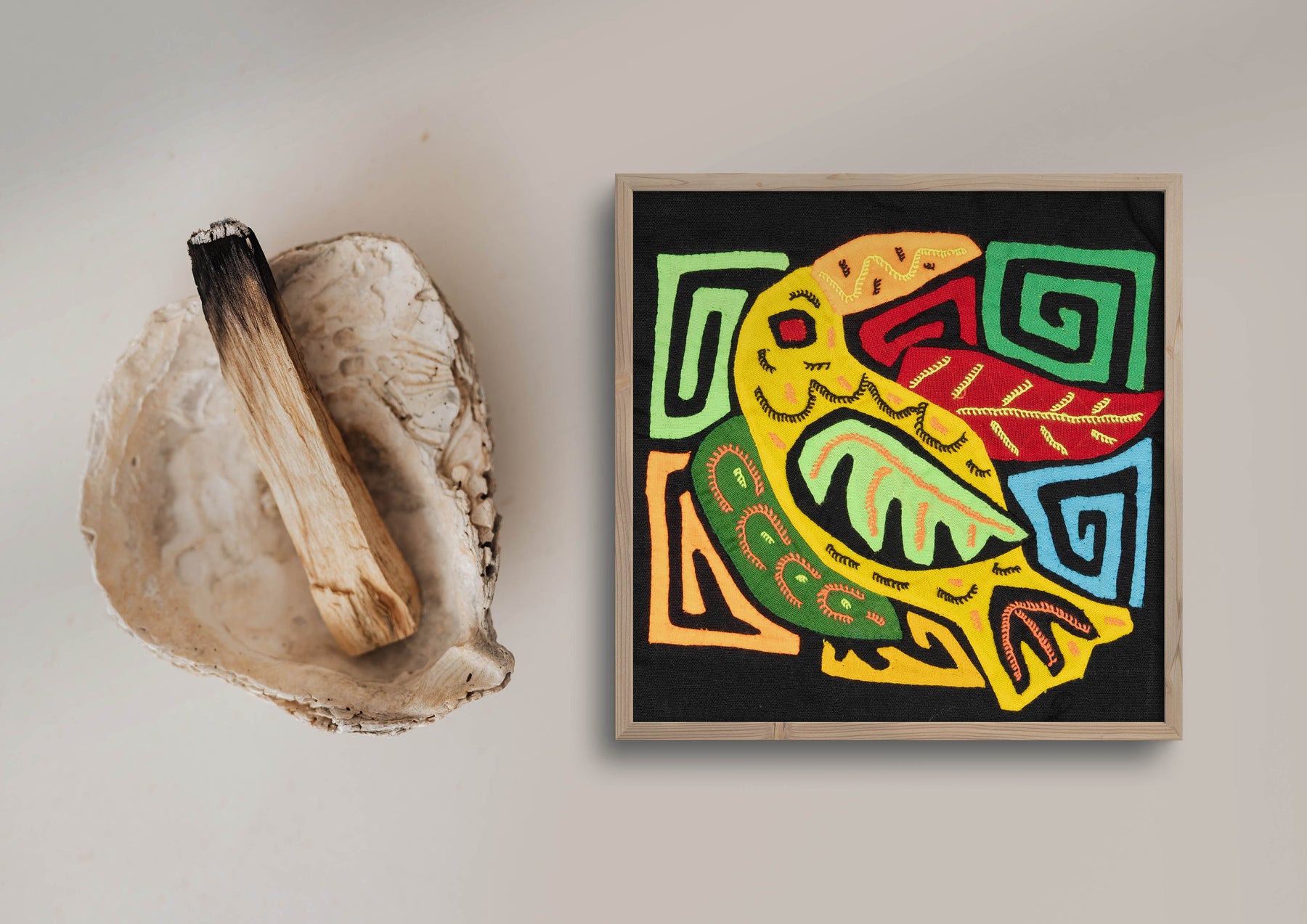 Molitas are traditionally used as parts of mola blouses, and today they make beautiful small works of art in their own right. You can frame this piece, incorporate it into a quilt or pillow, or display it on a shelf to bring a touch of vibrant Panamanian culture into your space. Because each molita is stitched by hand, no two are exactly alike, and small variations in color and stitching add to its character and authenticity.