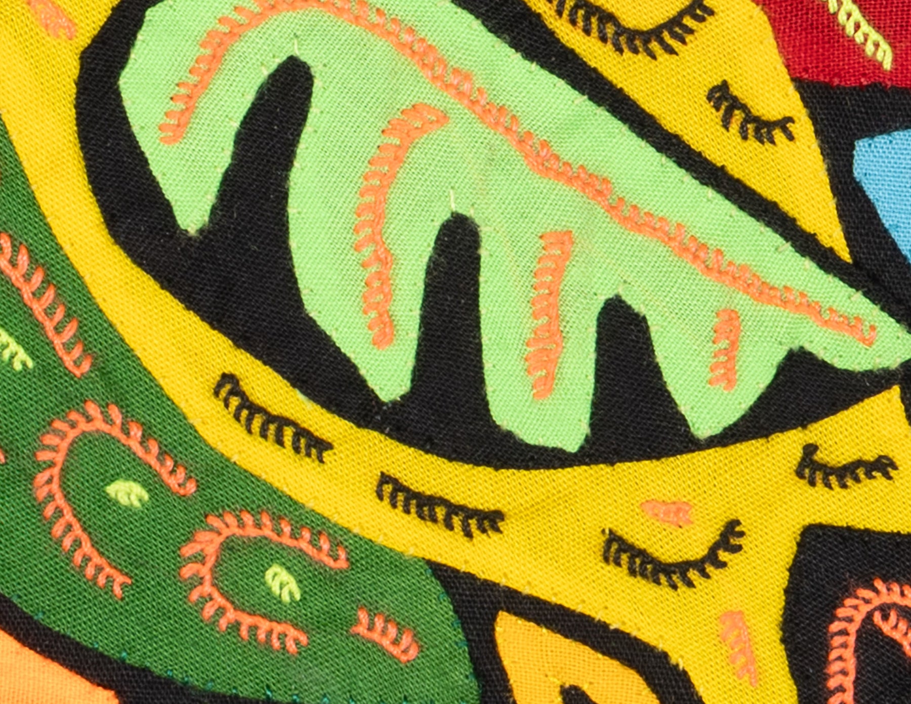 The process begins with layering vibrant cotton fabrics, which are carefully cut to reveal intricate patterns beneath. Guna artisans then use a combination of appliqué and reverse appliqué techniques, often enhancing each piece with fine hand embroidery. The result is a stunning, one-of-a-kind work of textile art rich in tradition, color, and cultural meaning.