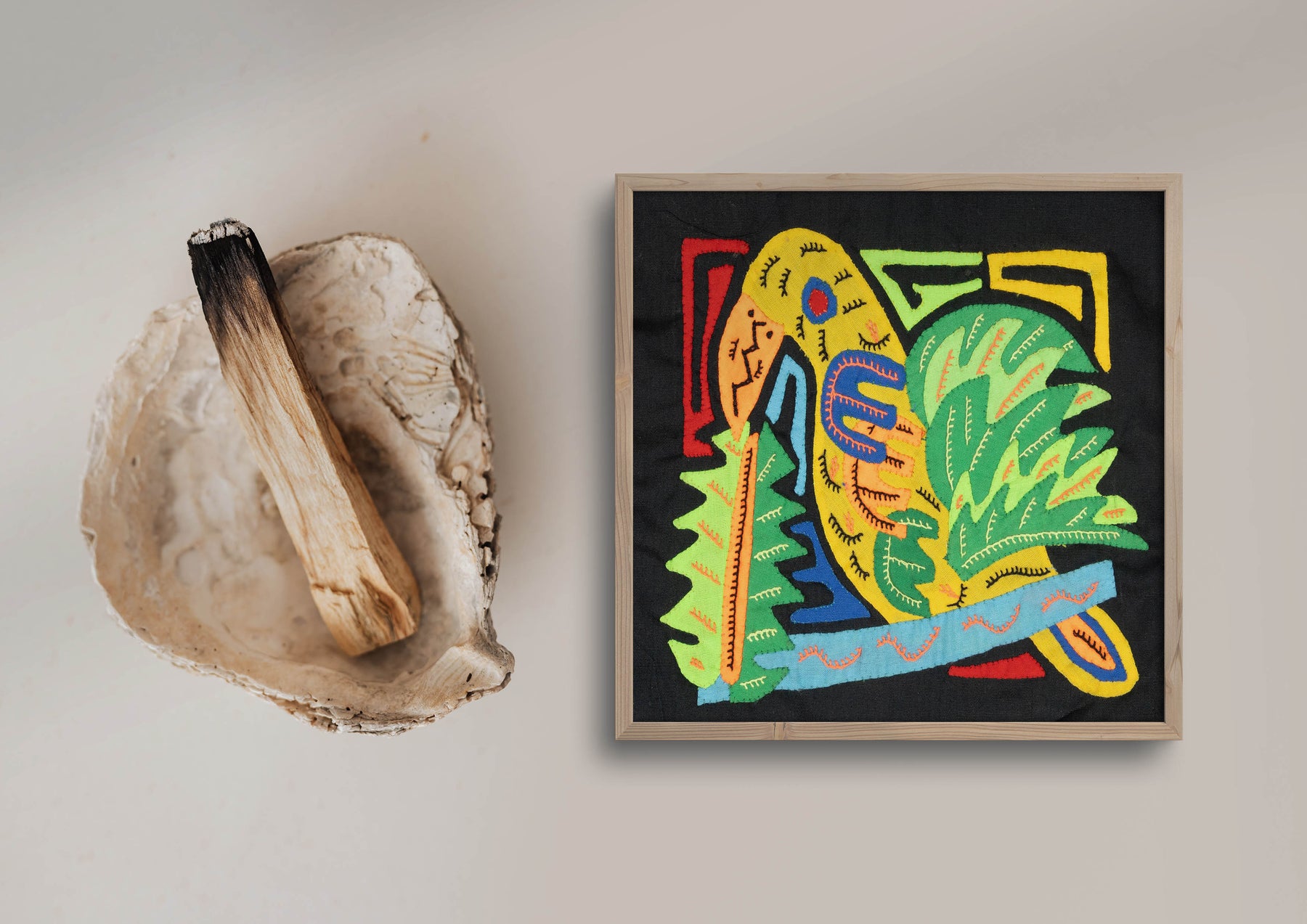 Molitas are traditionally used as parts of mola blouses, and today they make beautiful small works of art in their own right. You can frame this piece, incorporate it into a quilt or pillow, or display it on a shelf to bring a touch of vibrant Panamanian culture into your space. Because each molita is stitched by hand, no two are exactly alike, and small variations in color and stitching add to its character and authenticity.