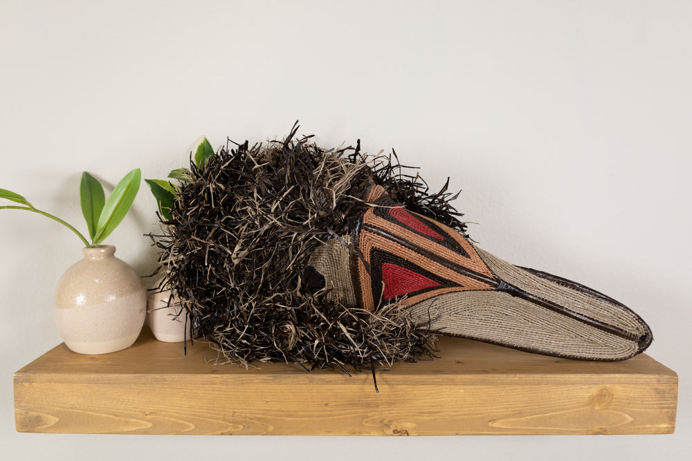 This intricately handwoven Shoebill Stork mask is the perfect addition to any wall. The beautiful colors and patterns are eye-catching and will liven up any room. Not to mention, it's a great conversation starter! The mask is also Fair Trade, so you can feel good about your purchase knowing that you are directly contributing to the Indigenous artisan community of Panama.