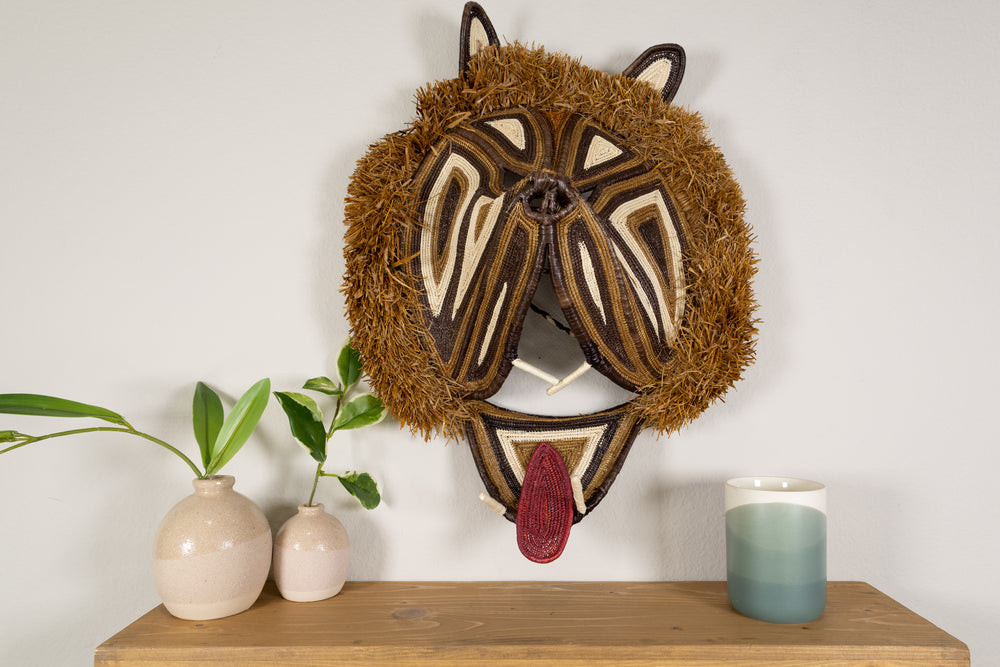 This intricately handwoven Male Lion mask is the perfect addition to any wall. The beautiful colors and patterns are eye-catching and will liven up any room. Not to mention, it's a great conversation starter! The mask is also Fair Trade, so you can feel good about your purchase knowing that you are directly contributing to the Indigenous artisan community of Panama.