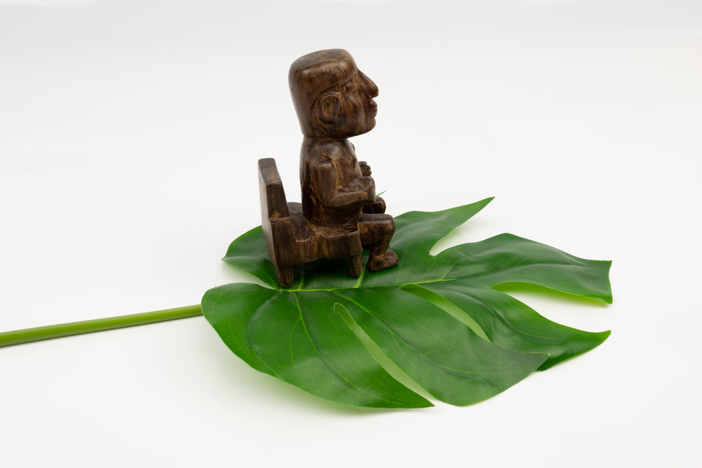 Hand Carved Cocobolo Wood Figure in Chair Sculpture