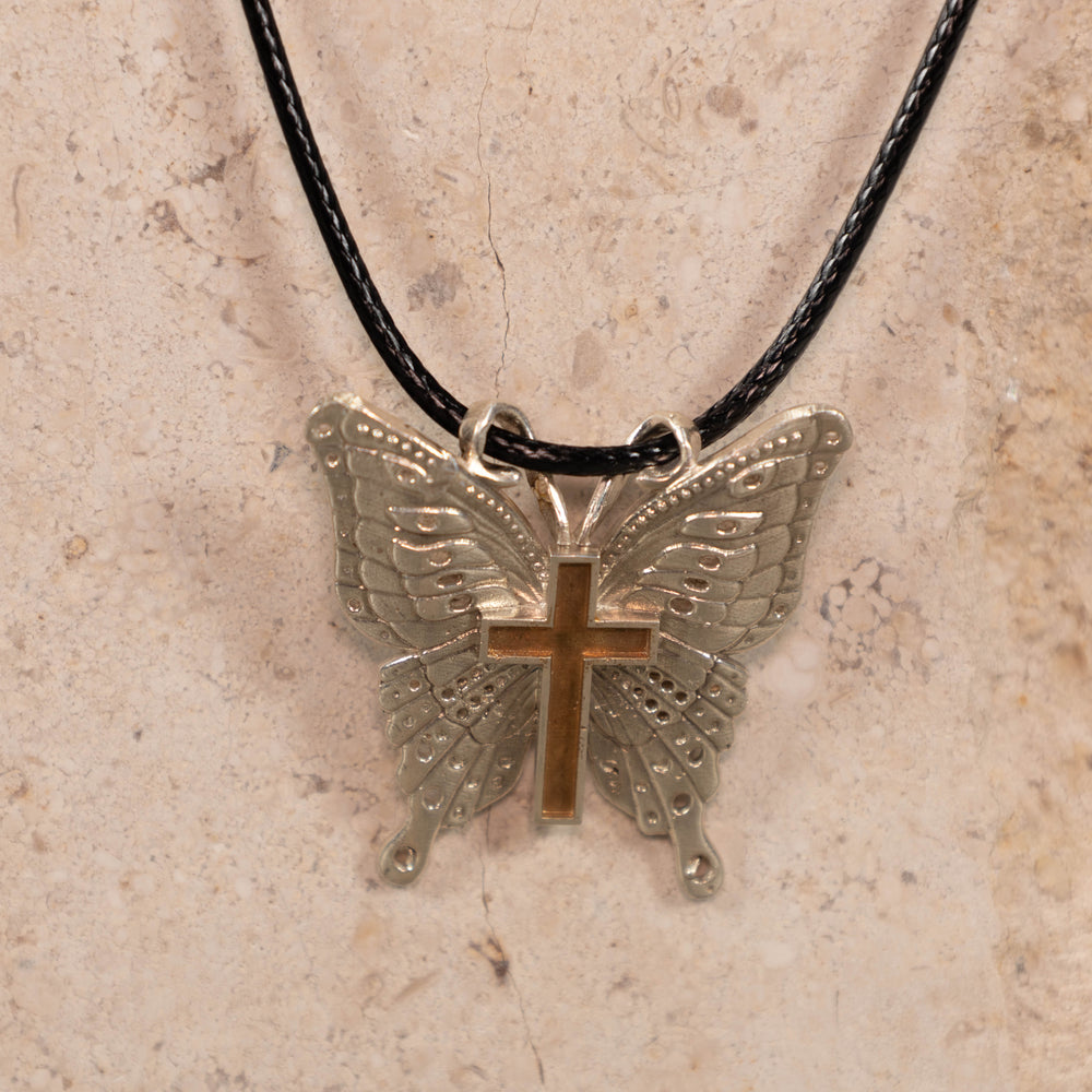 • Design: The pendant features a stunning butterfly design with a central cross, symbolizing rebirth and the spiritual journey.