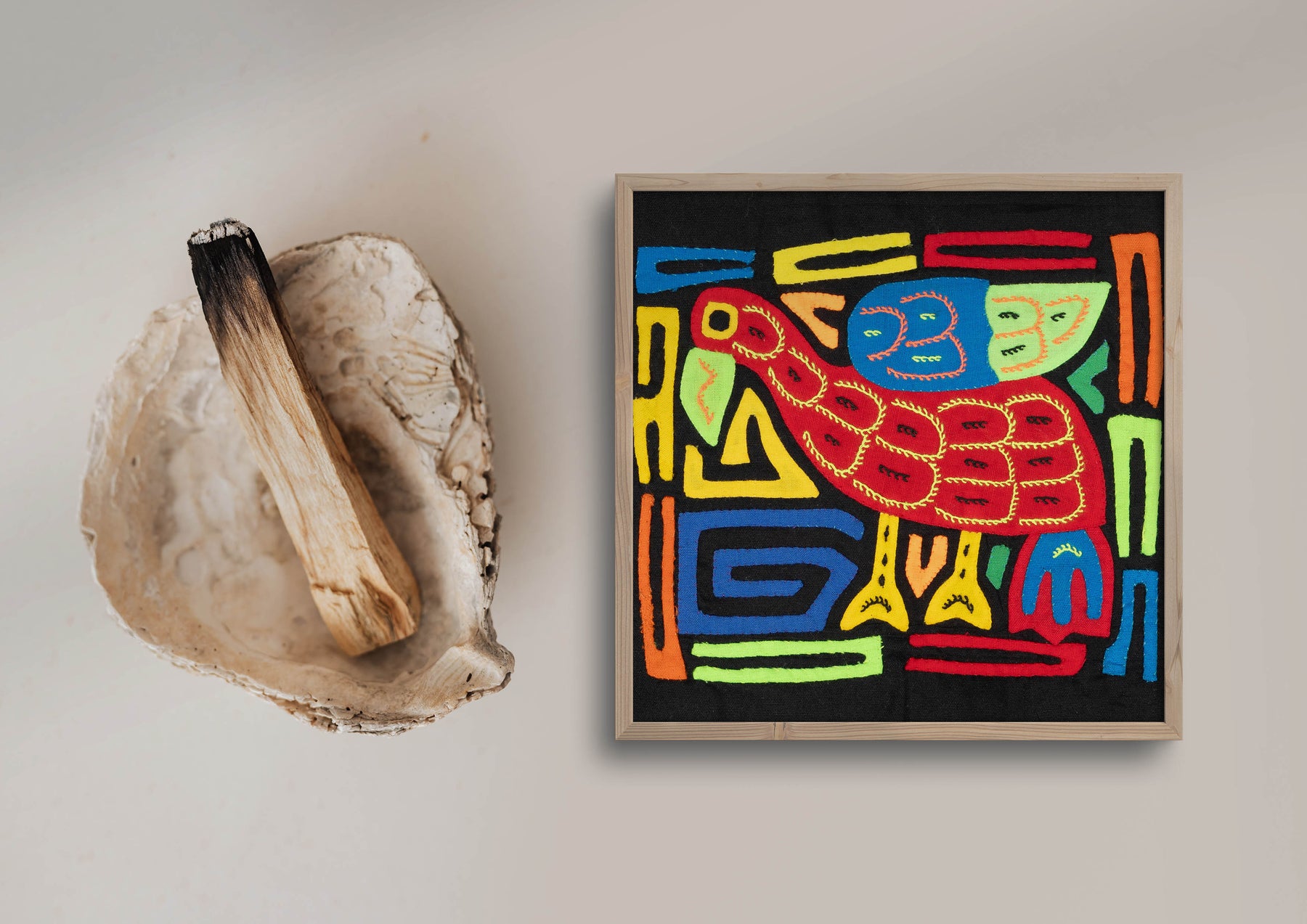 Molitas are traditionally used as parts of mola blouses, and today they make beautiful small works of art in their own right. You can frame this piece, incorporate it into a quilt or pillow, or display it on a shelf to bring a touch of vibrant Panamanian culture into your space. Because each molita is stitched by hand, no two are exactly alike, and small variations in color and stitching add to its character and authenticity.