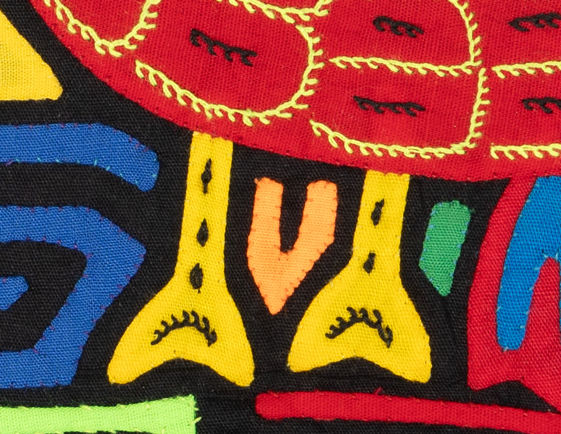 The process begins with layering vibrant cotton fabrics, which are carefully cut to reveal intricate patterns beneath. Guna artisans then use a combination of appliqué and reverse appliqué techniques, often enhancing each piece with fine hand embroidery. The result is a stunning, one-of-a-kind work of textile art rich in tradition, color, and cultural meaning.
