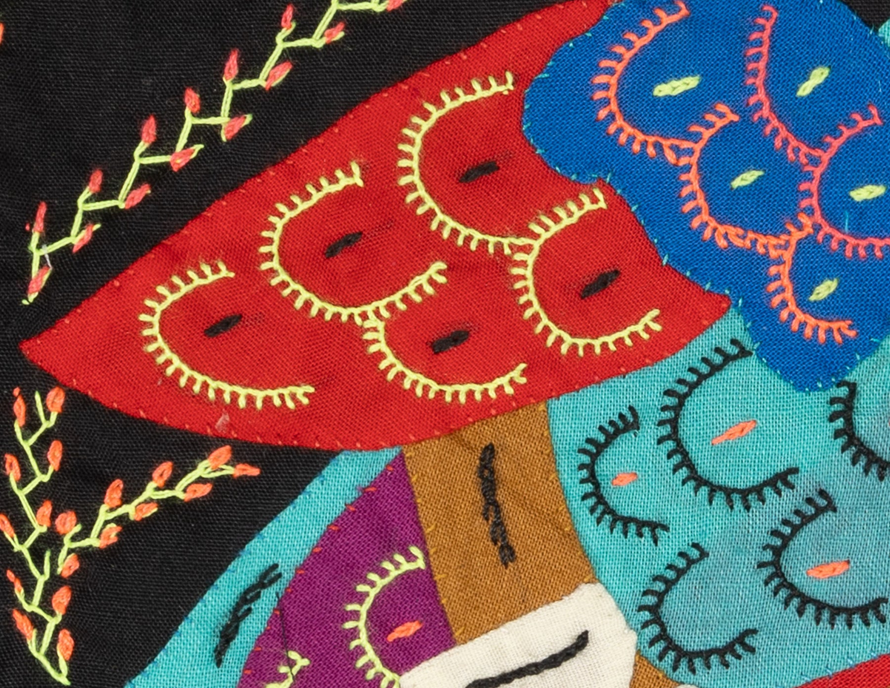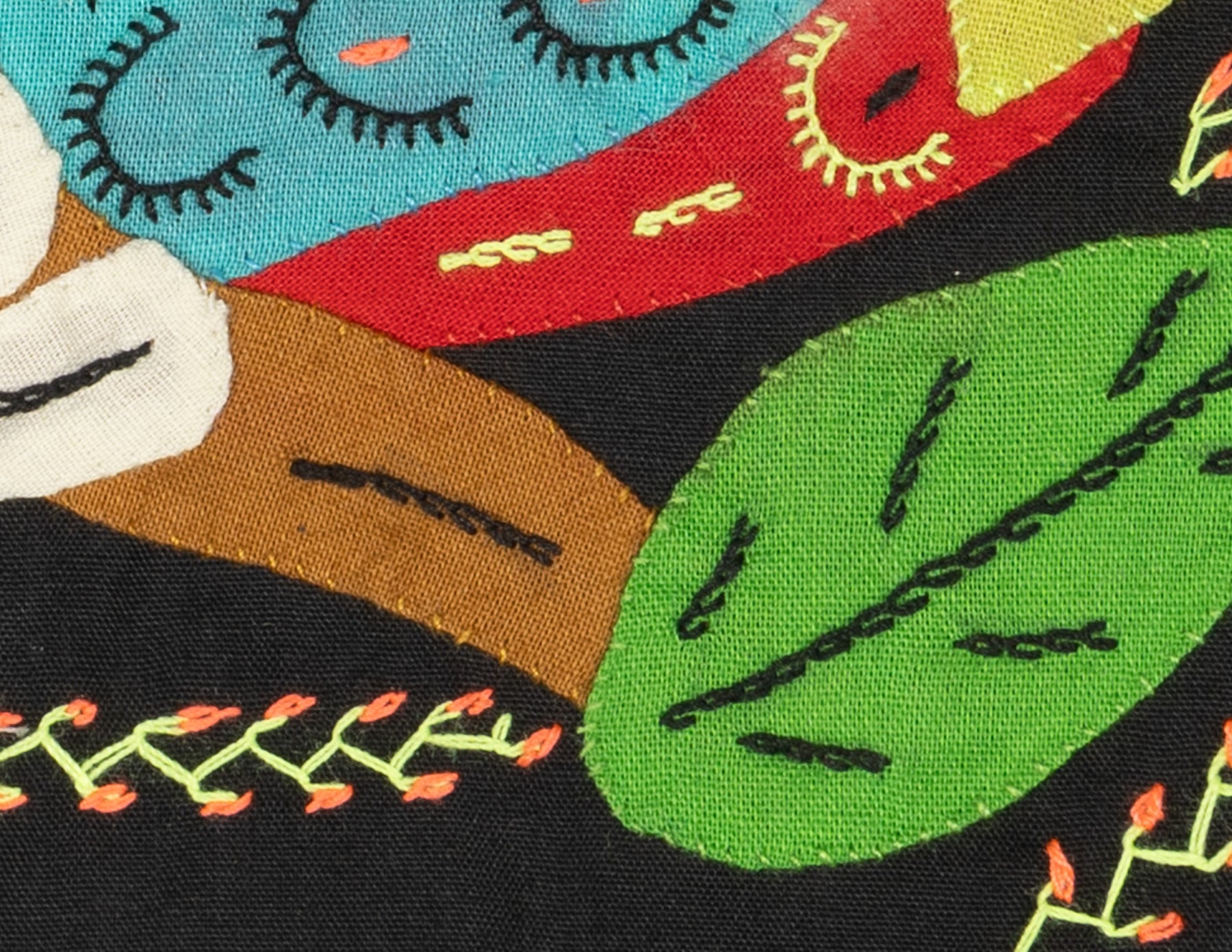 • Reverse appliqué design with layered cotton fabric and vivid colors