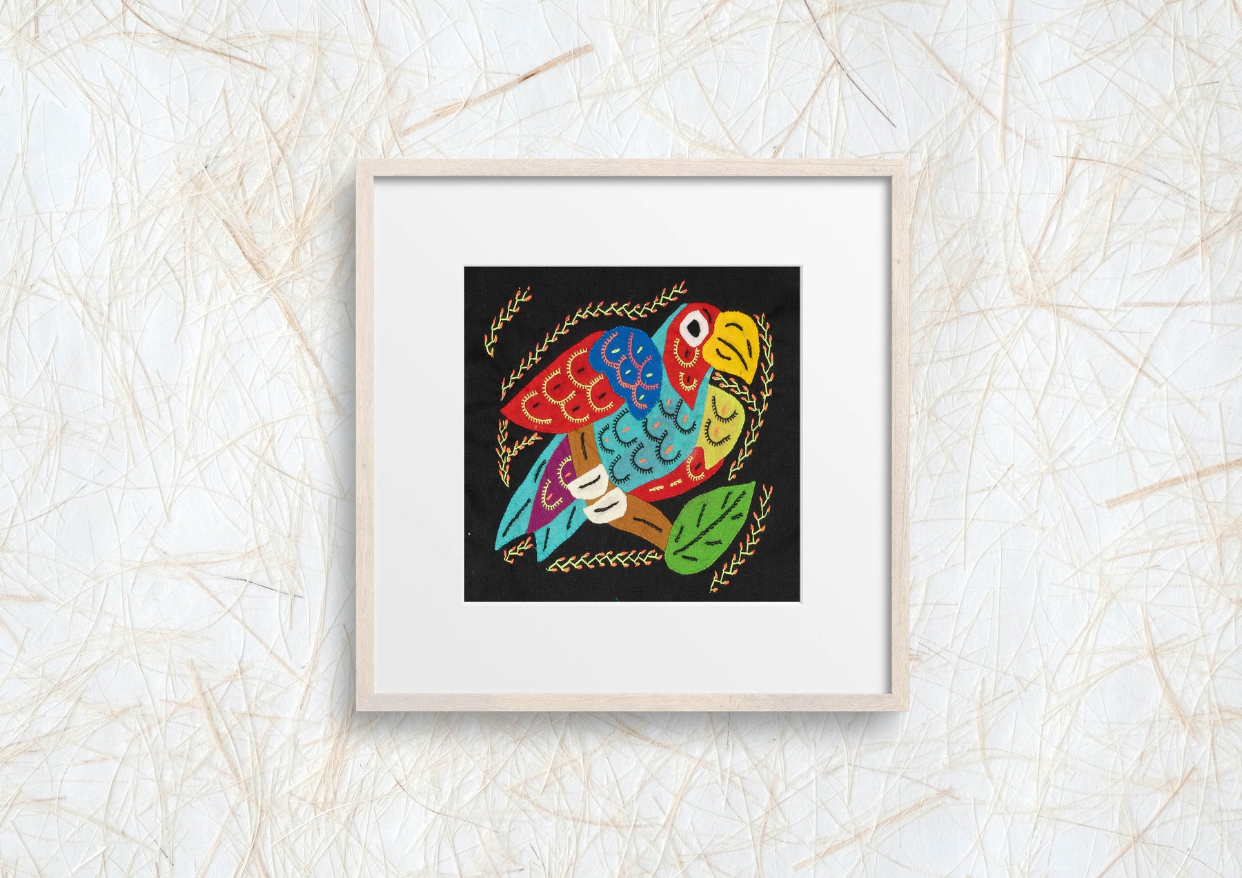 Molitas are traditionally used as parts of mola blouses, and today they make beautiful small works of art in their own right. You can frame this piece, incorporate it into a quilt or pillow, or display it on a shelf to bring a touch of vibrant Panamanian culture into your space. Because each molita is stitched by hand, no two are exactly alike, and small variations in color and stitching add to its character and authenticity.
