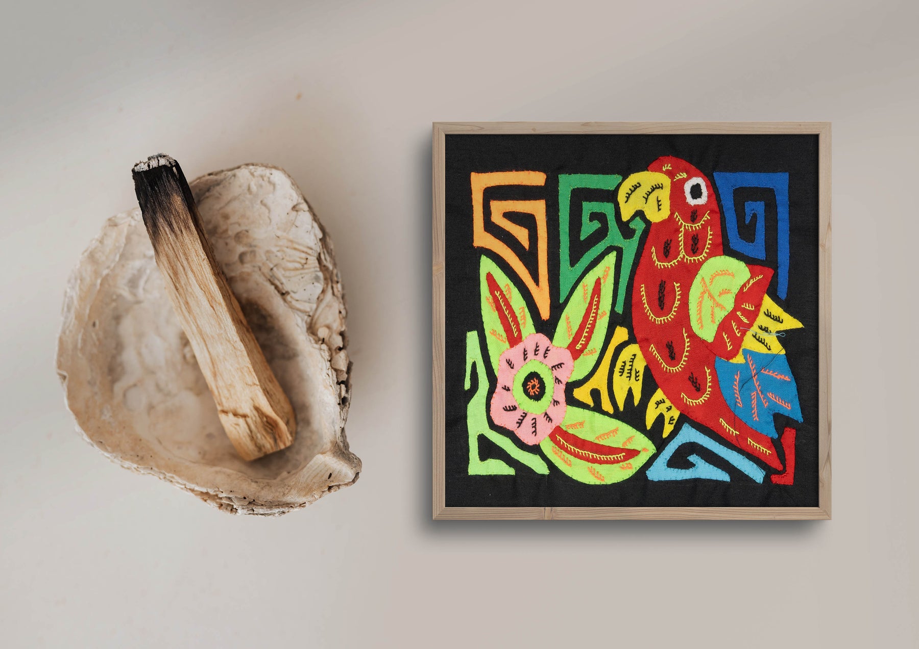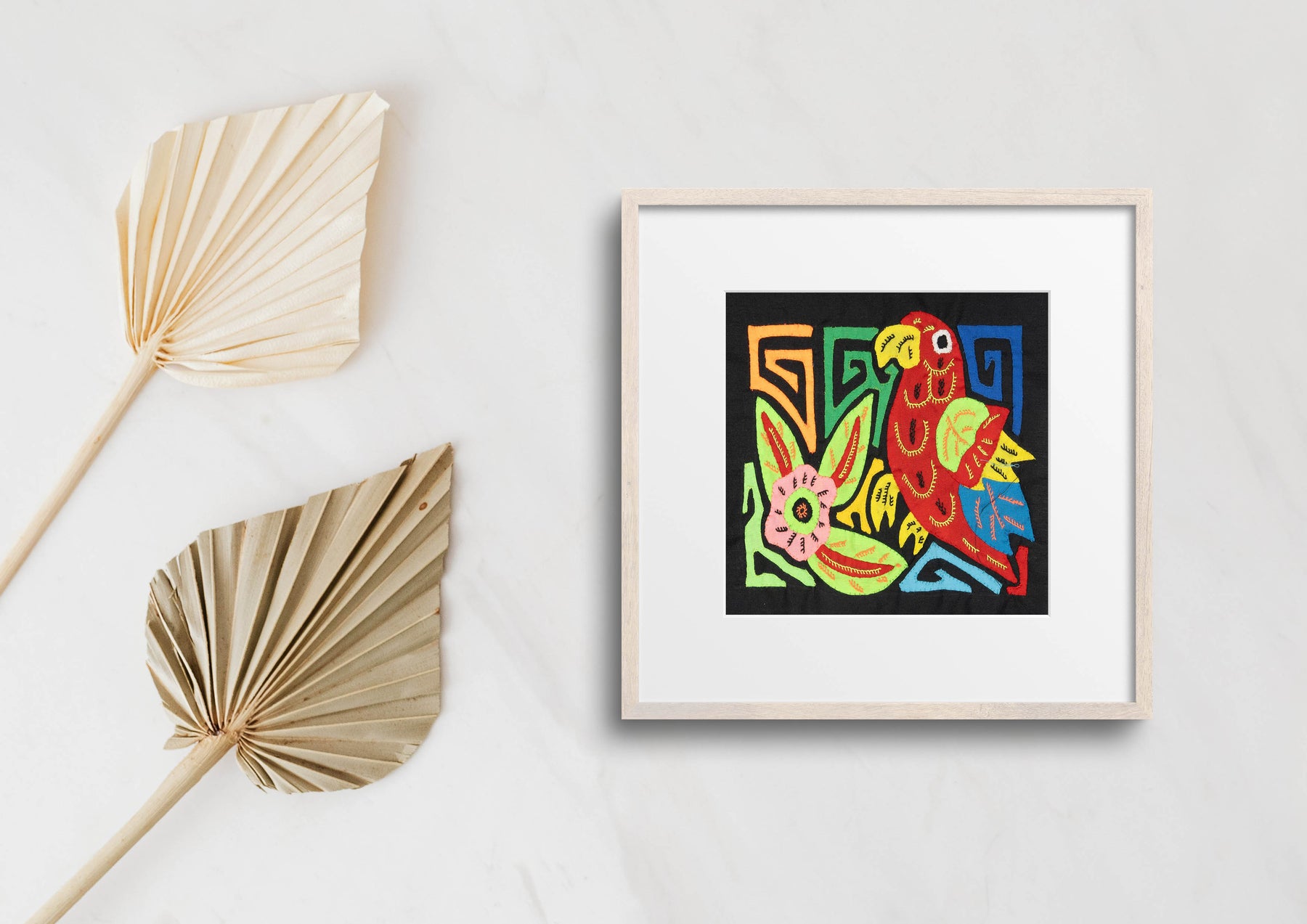 Molitas are traditionally used as parts of mola blouses, and today they make beautiful small works of art in their own right. You can frame this piece, incorporate it into a quilt or pillow, or display it on a shelf to bring a touch of vibrant Panamanian culture into your space. Because each molita is stitched by hand, no two are exactly alike, and small variations in color and stitching add to its character and authenticity.