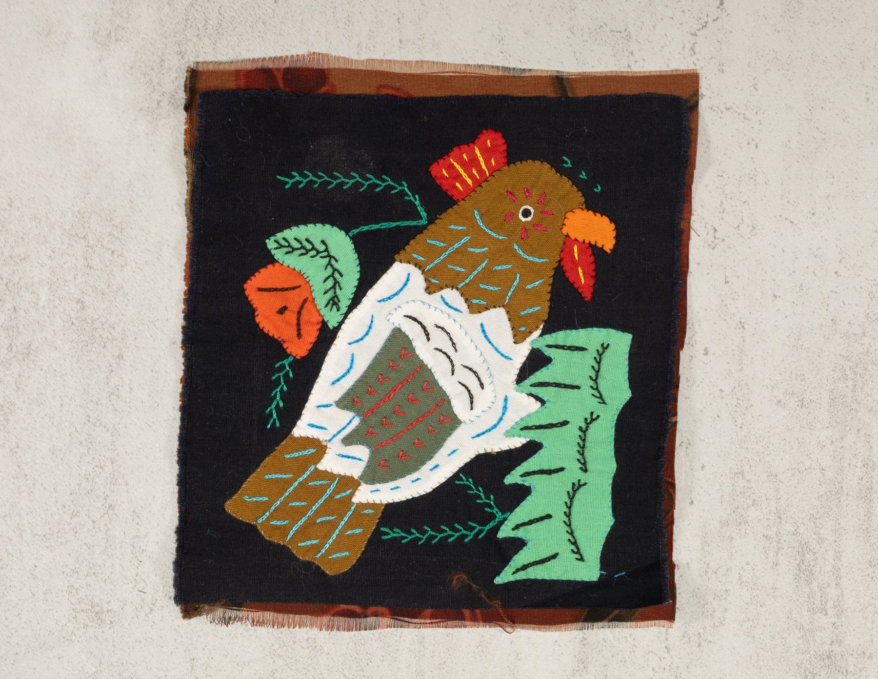 Hand sewn from layered cotton fabric, this colorful Multicolor White And Brown Bird Molita celebrates the traditional textile art of the Guna people of Panama. Each small panel is created using reverse appliqué, where artisans carefully cut and stitch several layers of cloth to reveal intricate patterns, animals, and geometric motifs. Every molita is made by our artisan partners for TraderBrock, supporting long term relationships with Guna communities in the Guna Yala region.