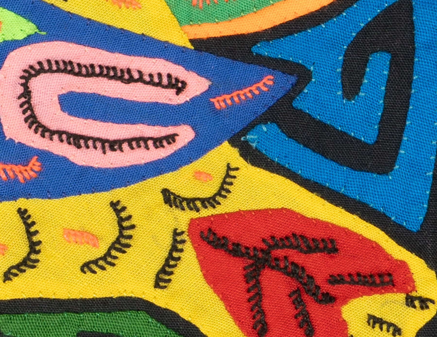 The process begins with layering vibrant cotton fabrics, which are carefully cut to reveal intricate patterns beneath. Guna artisans then use a combination of appliqué and reverse appliqué techniques, often enhancing each piece with fine hand embroidery. The result is a stunning, one-of-a-kind work of textile art rich in tradition, color, and cultural meaning.