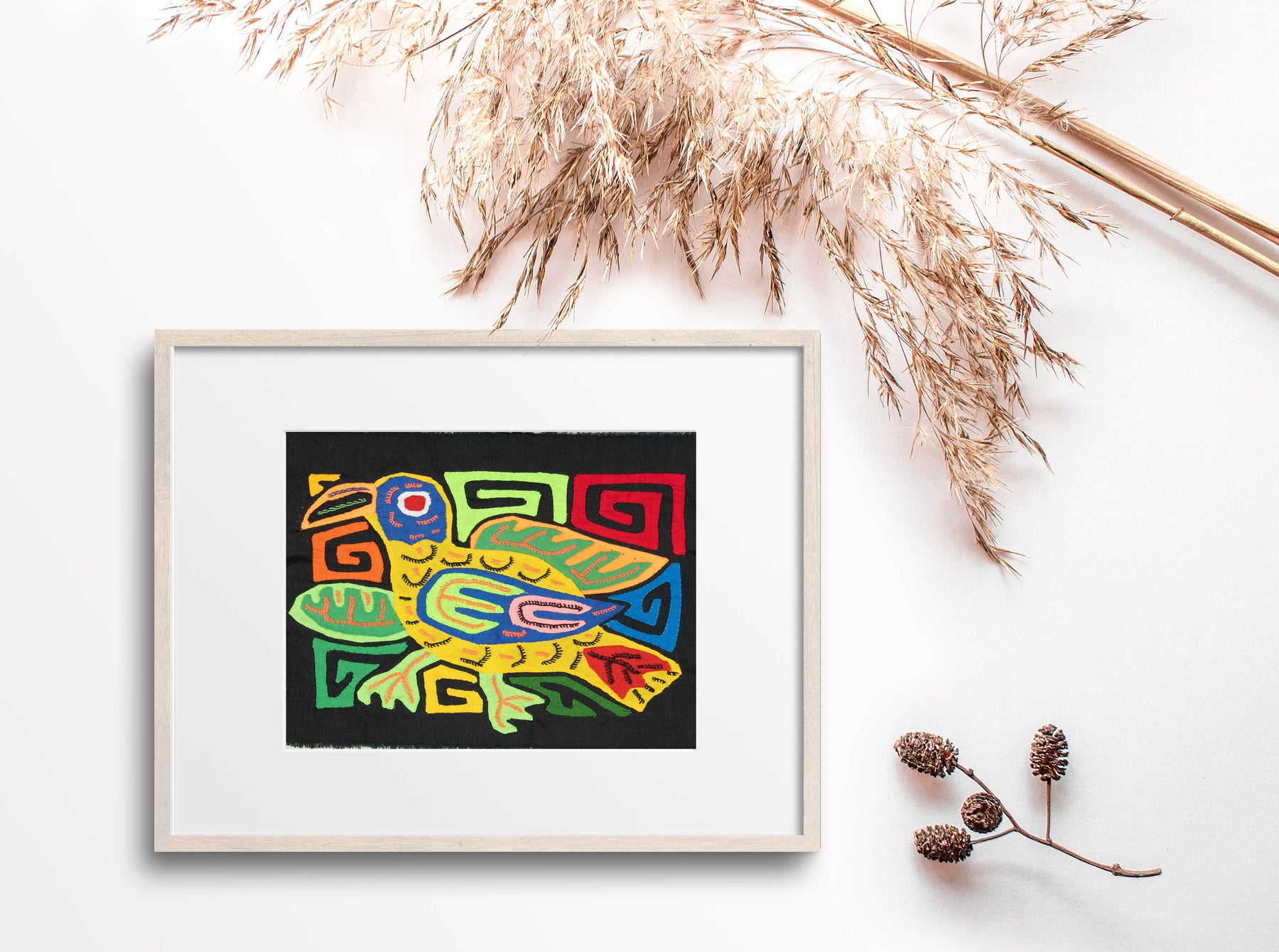 Molas often showcase animals such as birds, fish, turtles, and more. These designs can range from realistic to abstract and sometimes feature multiple animals in a single piece. Each depiction carries symbolic meaning and reflects the Guna people's deep connection to nature.