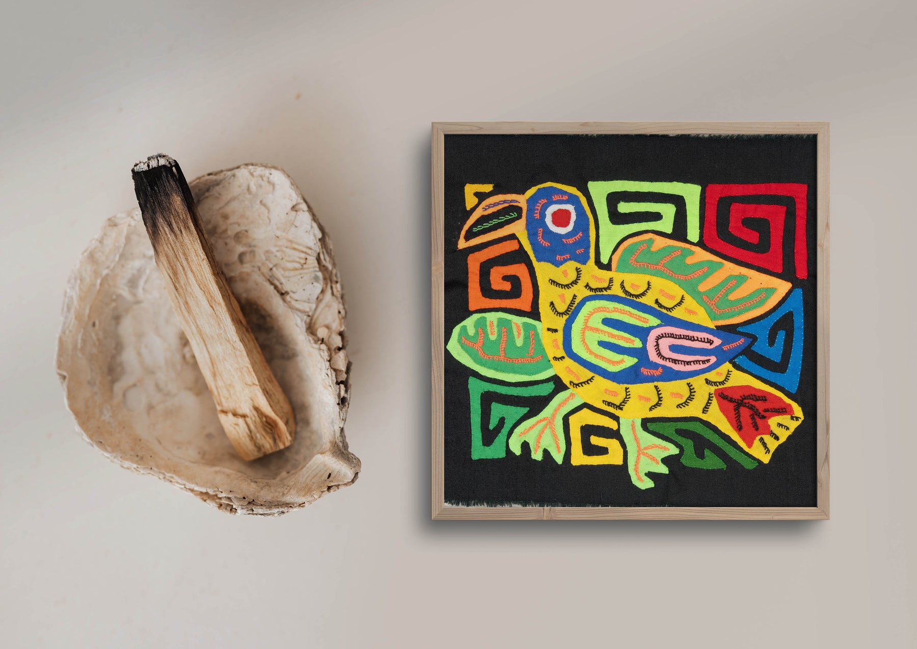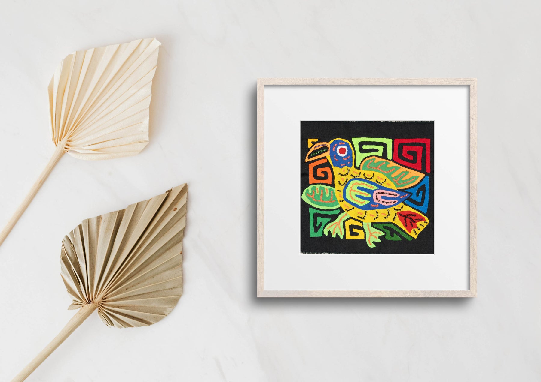 Molitas are traditionally used as parts of mola blouses, and today they make beautiful small works of art in their own right. You can frame this piece, incorporate it into a quilt or pillow, or display it on a shelf to bring a touch of vibrant Panamanian culture into your space. Because each molita is stitched by hand, no two are exactly alike, and small variations in color and stitching add to its character and authenticity.