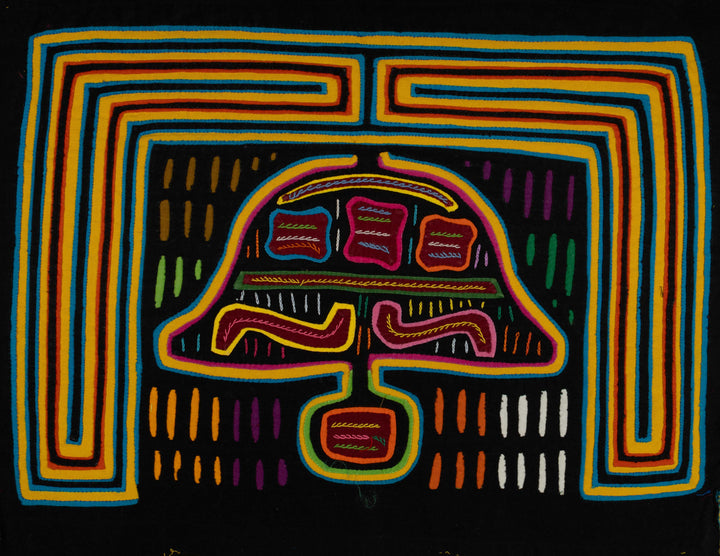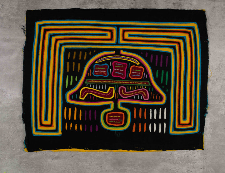 TRADITIONAL CONSTRUCTION & DESIGN: Molas are hand-made using a reverse appliqué technique using several layers of different colored cloth. The largest pattern is typically cut from the top layer and smaller patterns from each underlying layer. Geometric molas are the most traditional. Originating from ancient body paintings. Designs usually portray wildlife in the Rainforest. Inspiration comes from the nature and beauty that surrounds them.