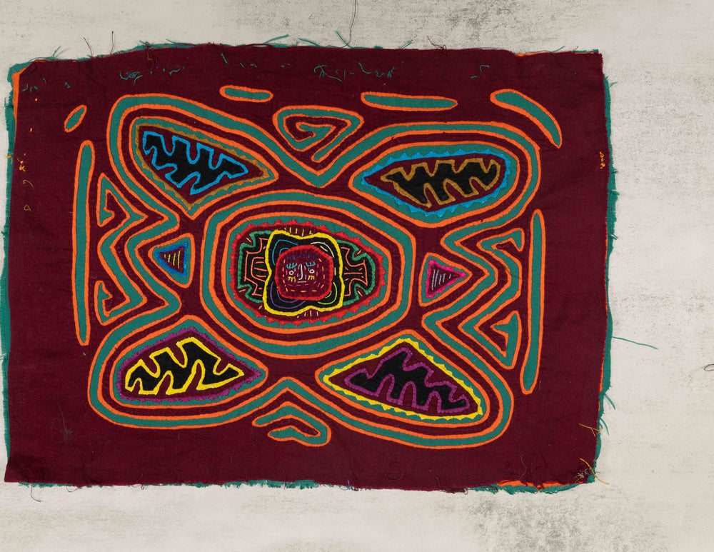 TRADITIONAL CONSTRUCTION & DESIGN: Molas are hand-made using a reverse appliqué technique using several layers of different colored cloth. The largest pattern is typically cut from the top layer and smaller patterns from each underlying layer. Geometric molas are the most traditional. Originating from ancient body paintings. Designs usually portray wildlife in the Rainforest. Inspiration comes from the nature and beauty that surrounds them.