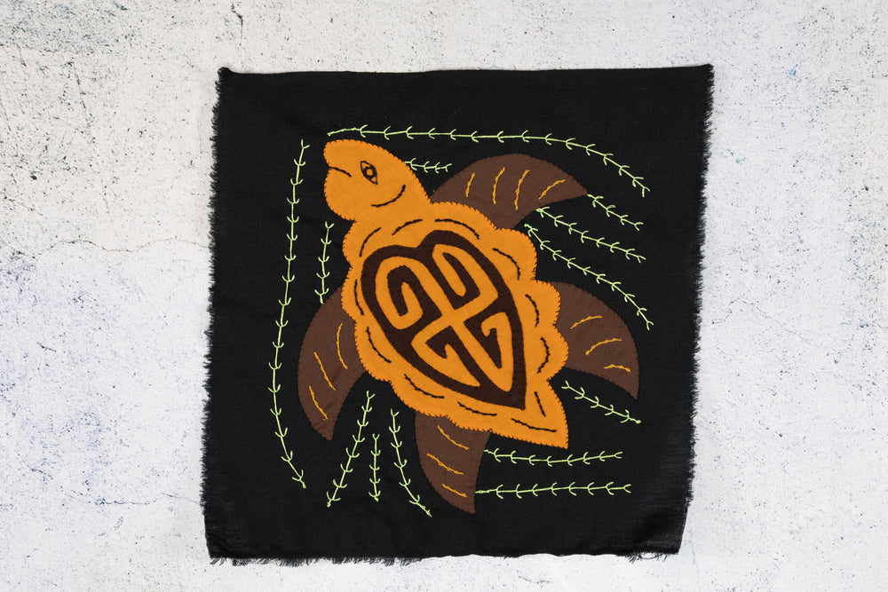 turtles. These designs may be realistic or abstract, and can include multiple animals in a single mola.
