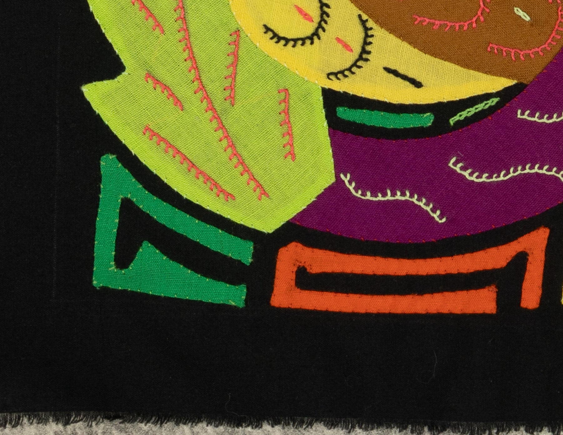 • Reverse appliqué design with layered cotton fabric and vivid colors